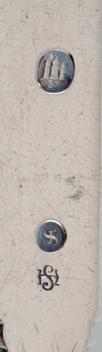 Horsens Sølvvarefabrik: "Funkis III". Serveringsske. Bestik af tretårnet sølv 1933. Måler 18 cm. Stemplet. I flot stand.
