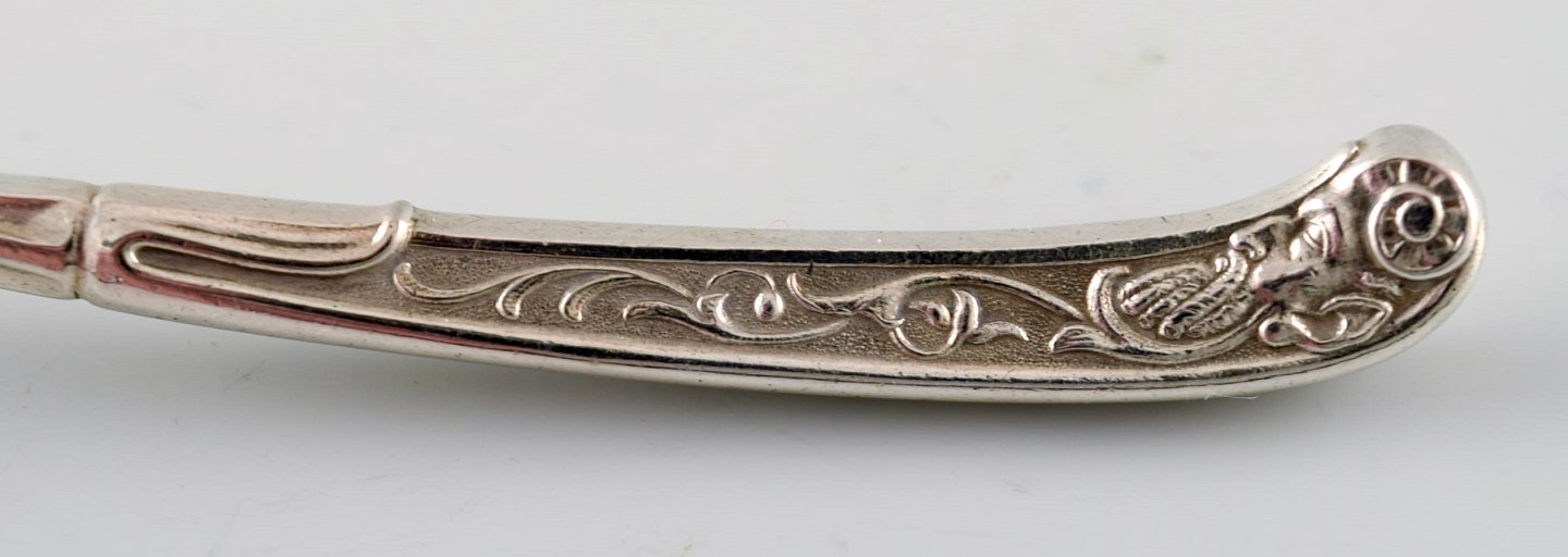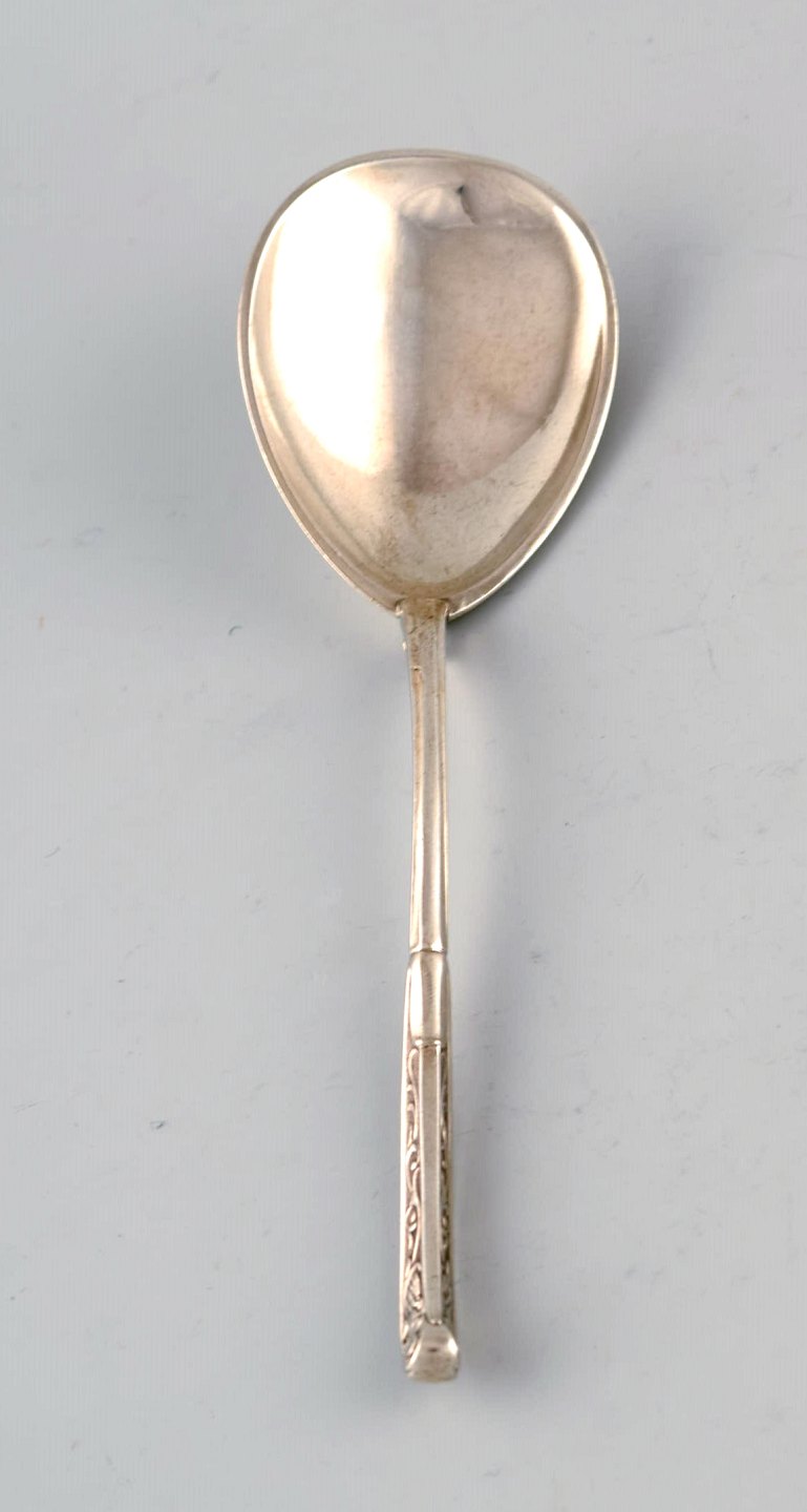 Danish silver serving spoon. Historicism. In very good condition. Stamped: JS for Guardein Jens Sigsgaard. Measures: 17 cm.