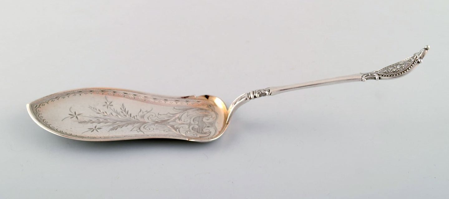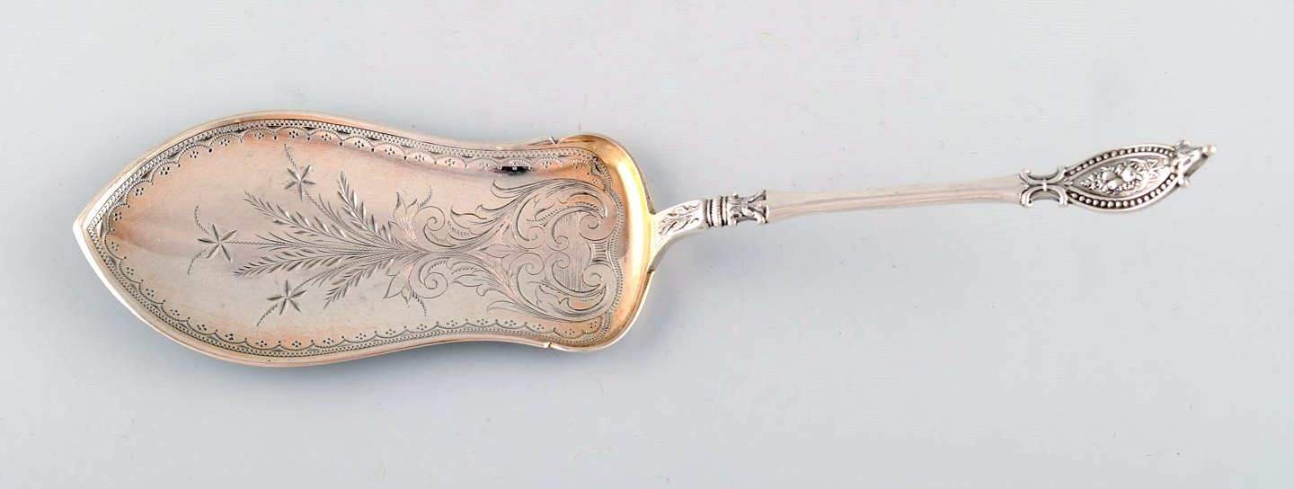 Serving spade in danish silver (830). 1917 Measures 28 cm. Stamped. In very good condition. With monogram, can be removed.