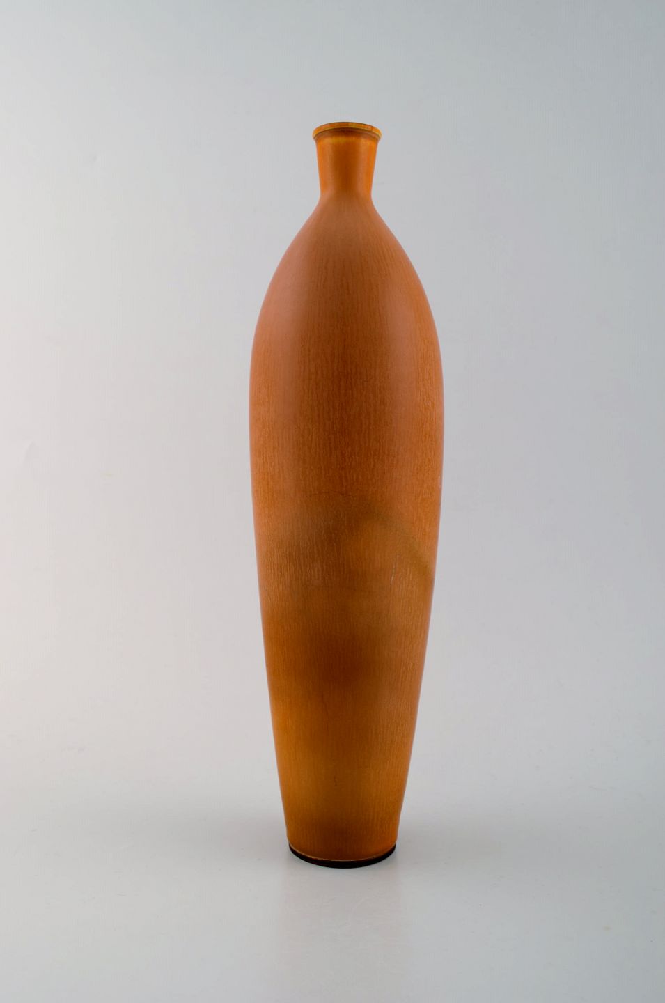 Large Berndt Friberg Studio art pottery vase. Modern Swedish, mid 20 c. Unique, handmade. Amazing glaze in shades of golden brown! Perfect. 1st. factory quality. Measures: 31,5 x 9 cm.