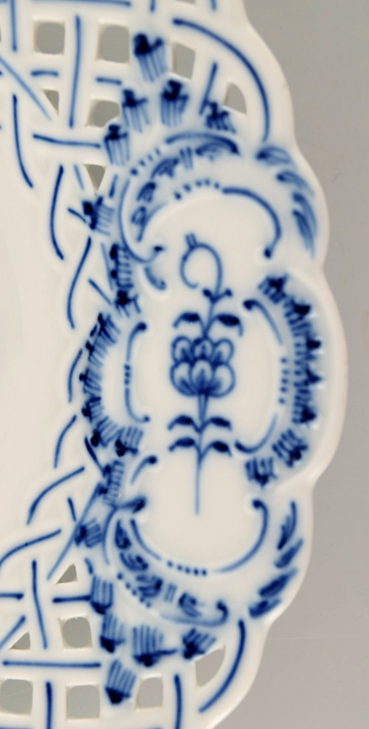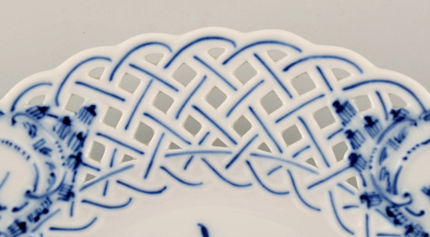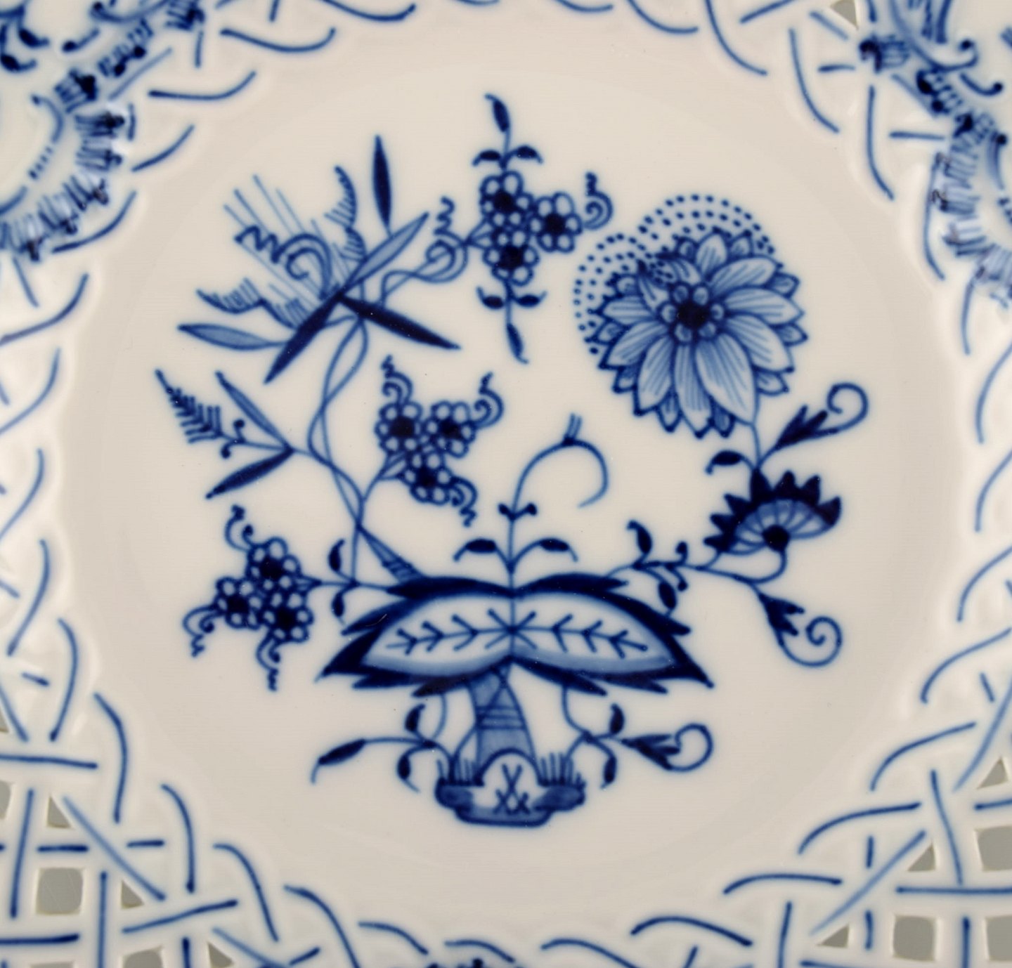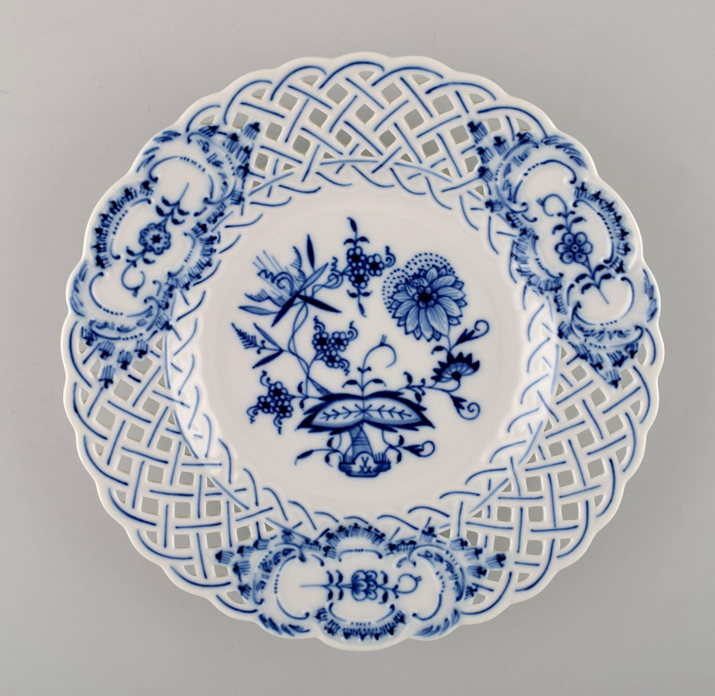 A pair of Meissen blue onion pierced/reticulated plates. In perfect condition, 1st. factory quality. Measures 18 cm x 3 cm.
