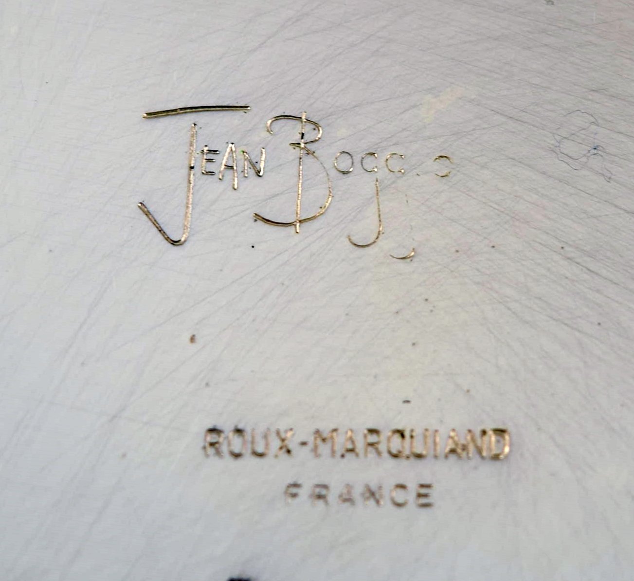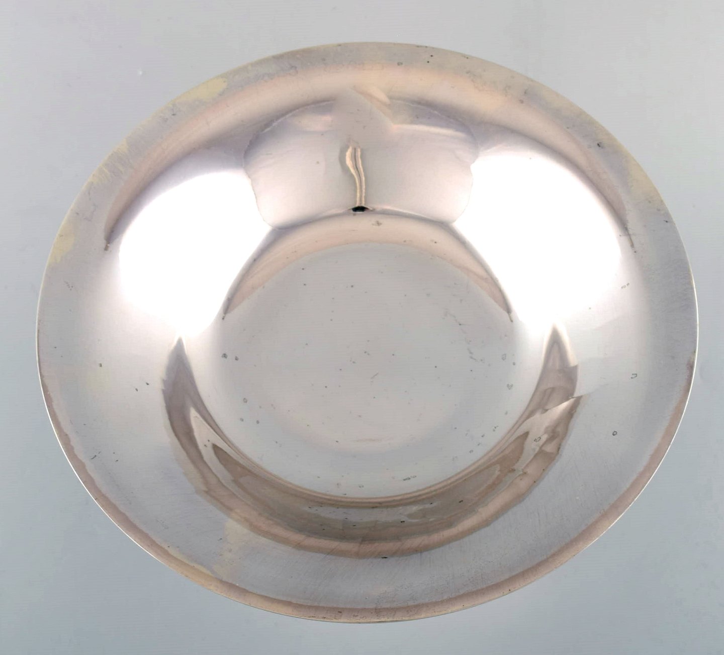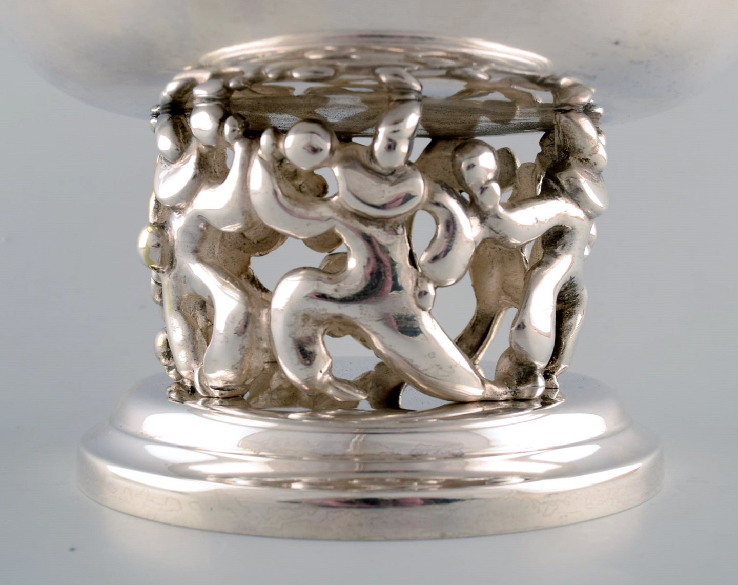 Jean Boggio for Roux-Marquiand, France. Large modernist compote in plated silver. Base with motive of dancing circus artists. In very good condition. Stamped. Measures: 30.5 cm x 14.5 cm.
