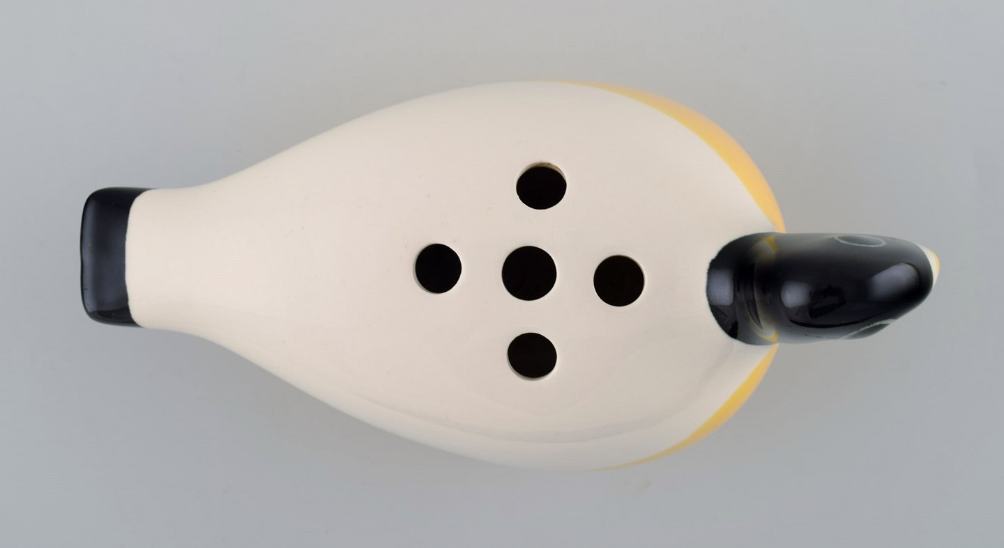 Nummer 2761 Aluminia Columbine hvid, sort og gul blomsterholder/fugl. Porcelæn/kunststen.