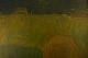 Norsk landskab med høstak og hus i baggrunden af Lili Ege (1913-2004). Olie på plade.