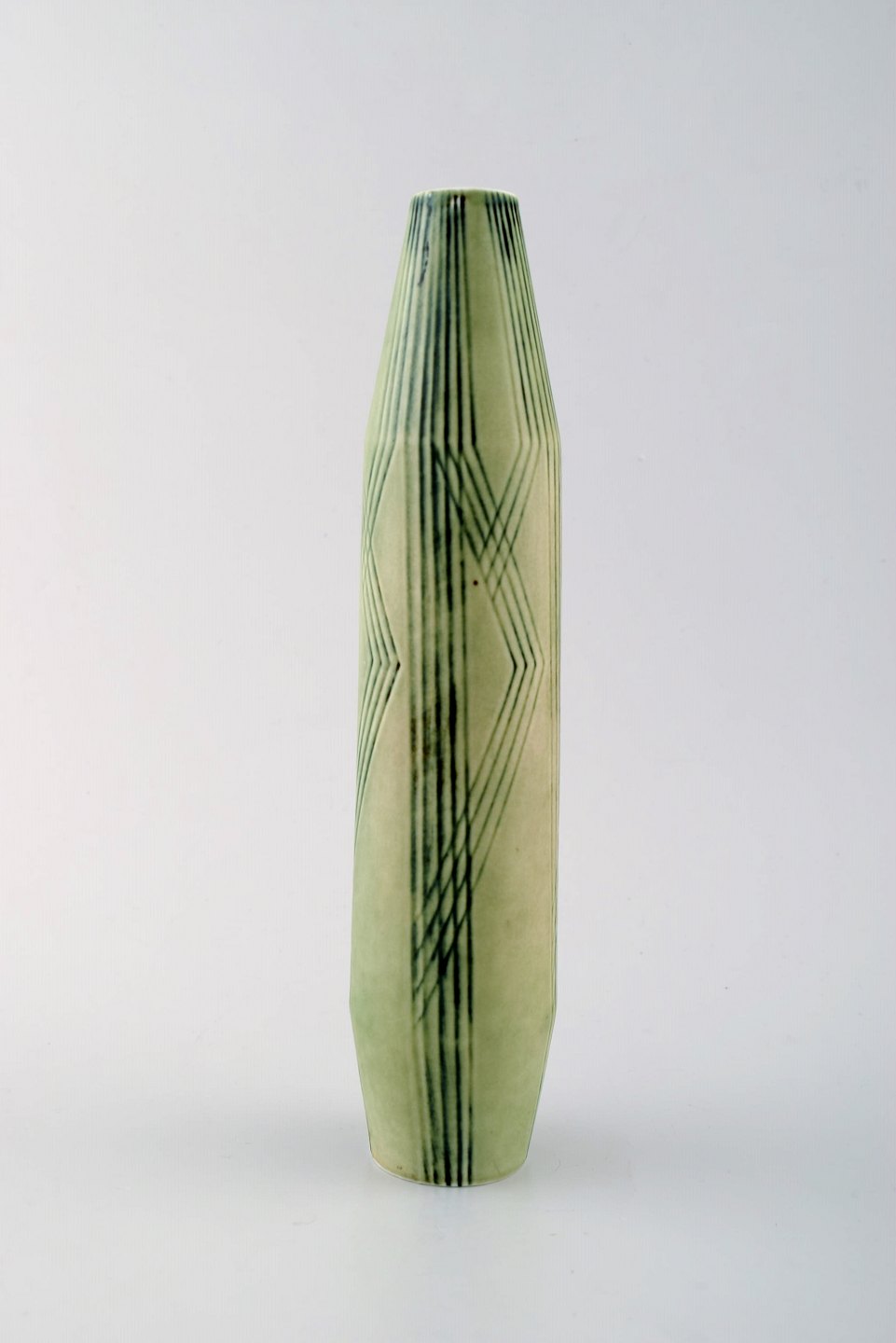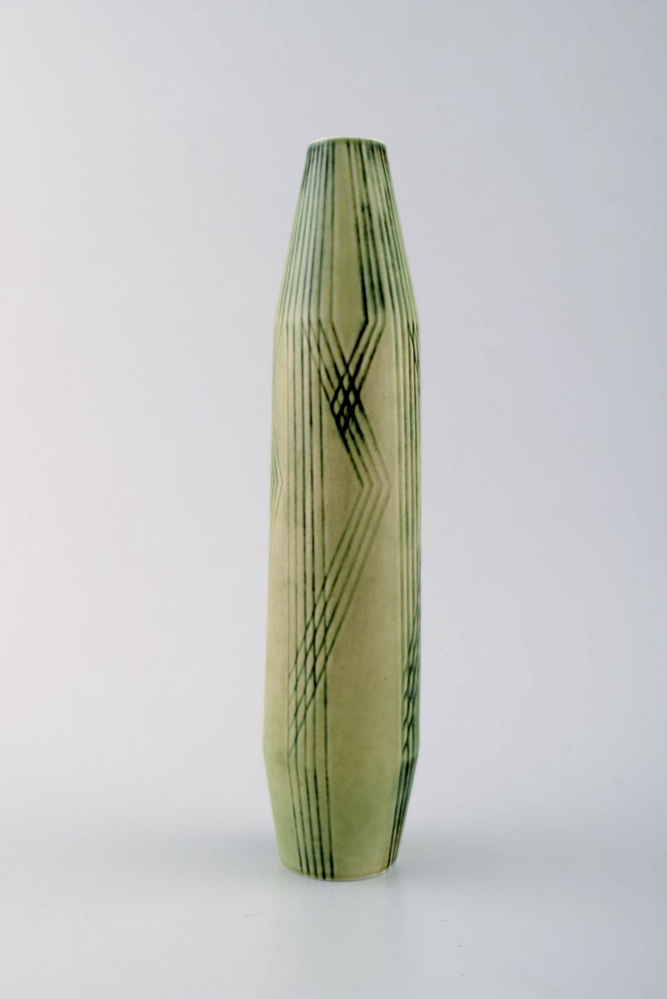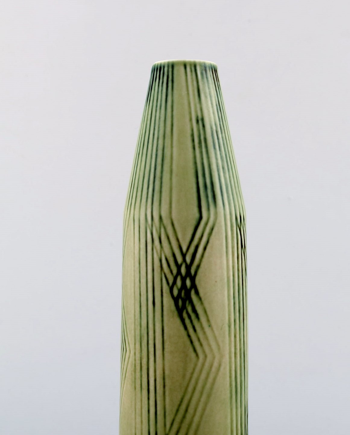 Carl-Harry Stalhane for Rorstrand / Rørstrand, ceramic vase. Rare form. Measures 25 cm x 5,5 cm. In perfect condition.