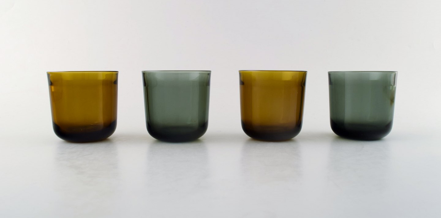 Kaj Franck (Finsk, 1911–1989) Nuutajärvi Glass Works, Finland, kunstglas. 9 mundblæste drikkeglas i forskellige farver. Finland 1960/70´erne. I perfekt stand. Måler : 7,5 cm. x 7,5 cm. Ustemplet.