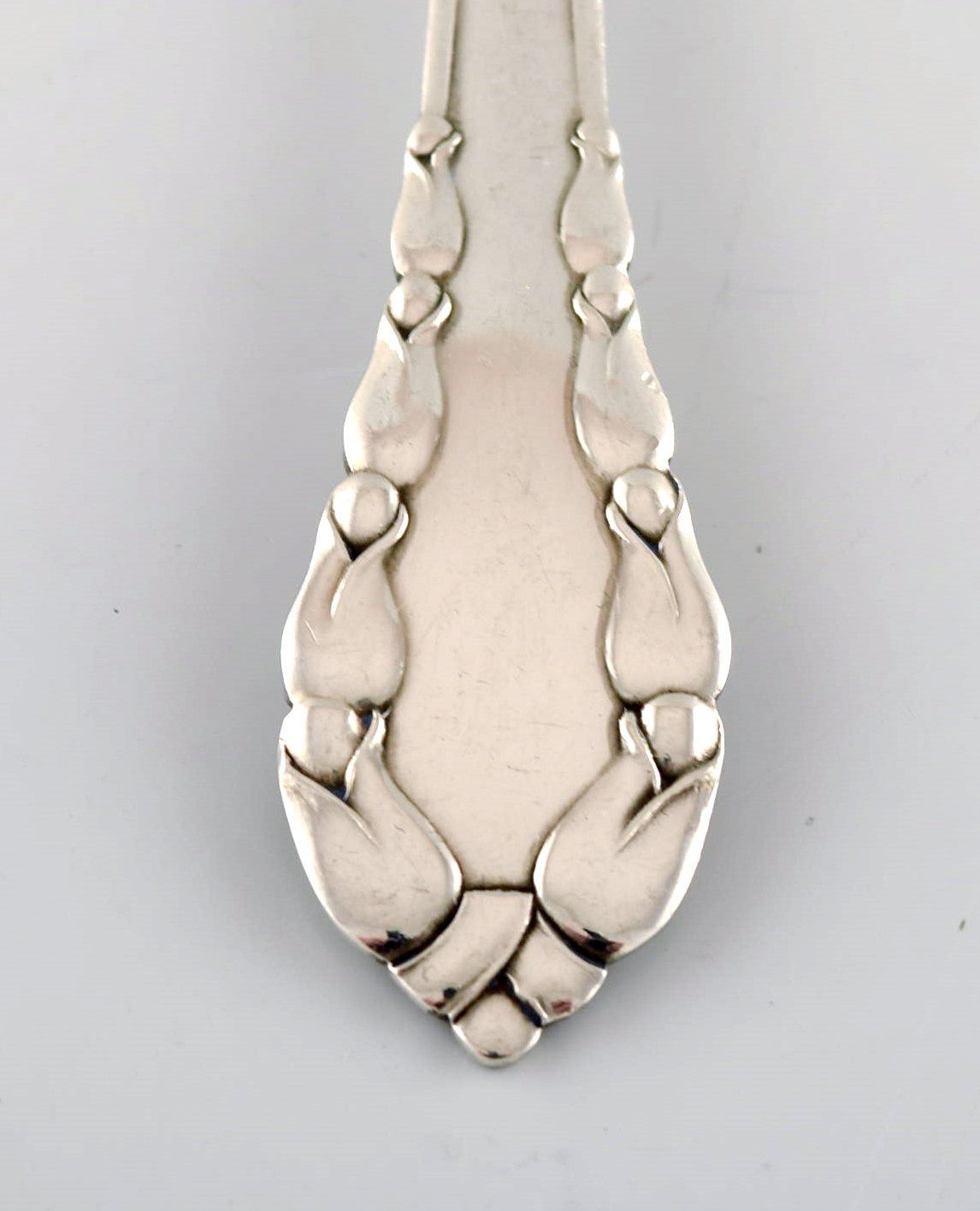 Georg Jensen "Liljekonval" sovseske i helsølv. Måler 19 cm. I flot stand. Stemplet. Tegnet af Georg Jensen i 1913.