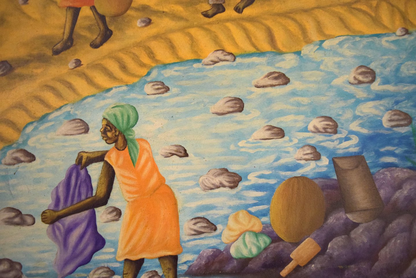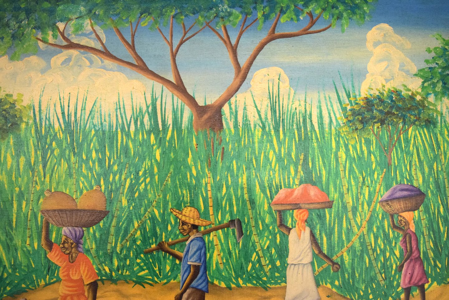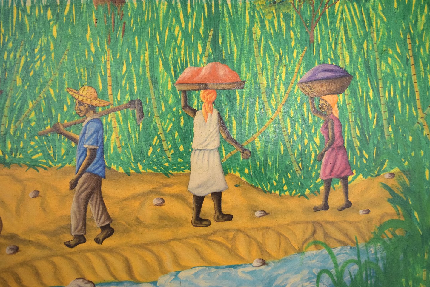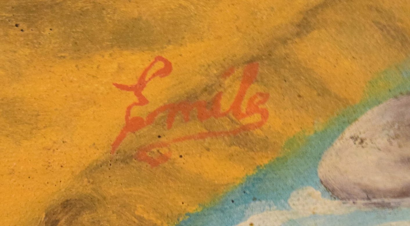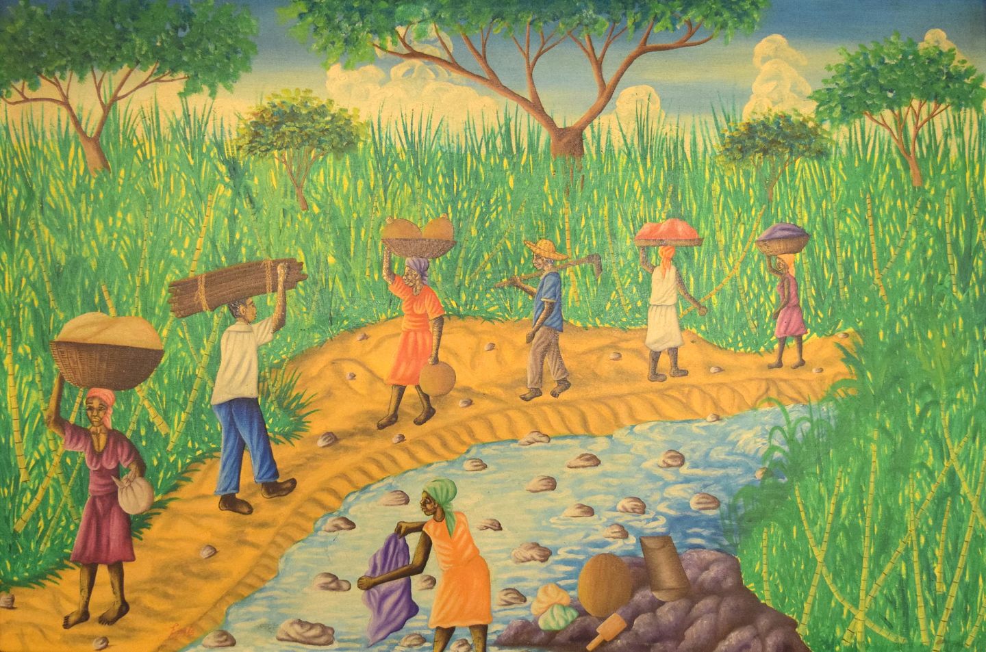 Emile, haitiansk kunstner. Naivistisk skole. Olie på lærred. 1970'erne. Lokale arbejdere gående ved flod. Signeret. I flot stand. Lærredet måler: 118 x 89 cm. Rammen måler: 2 cm.