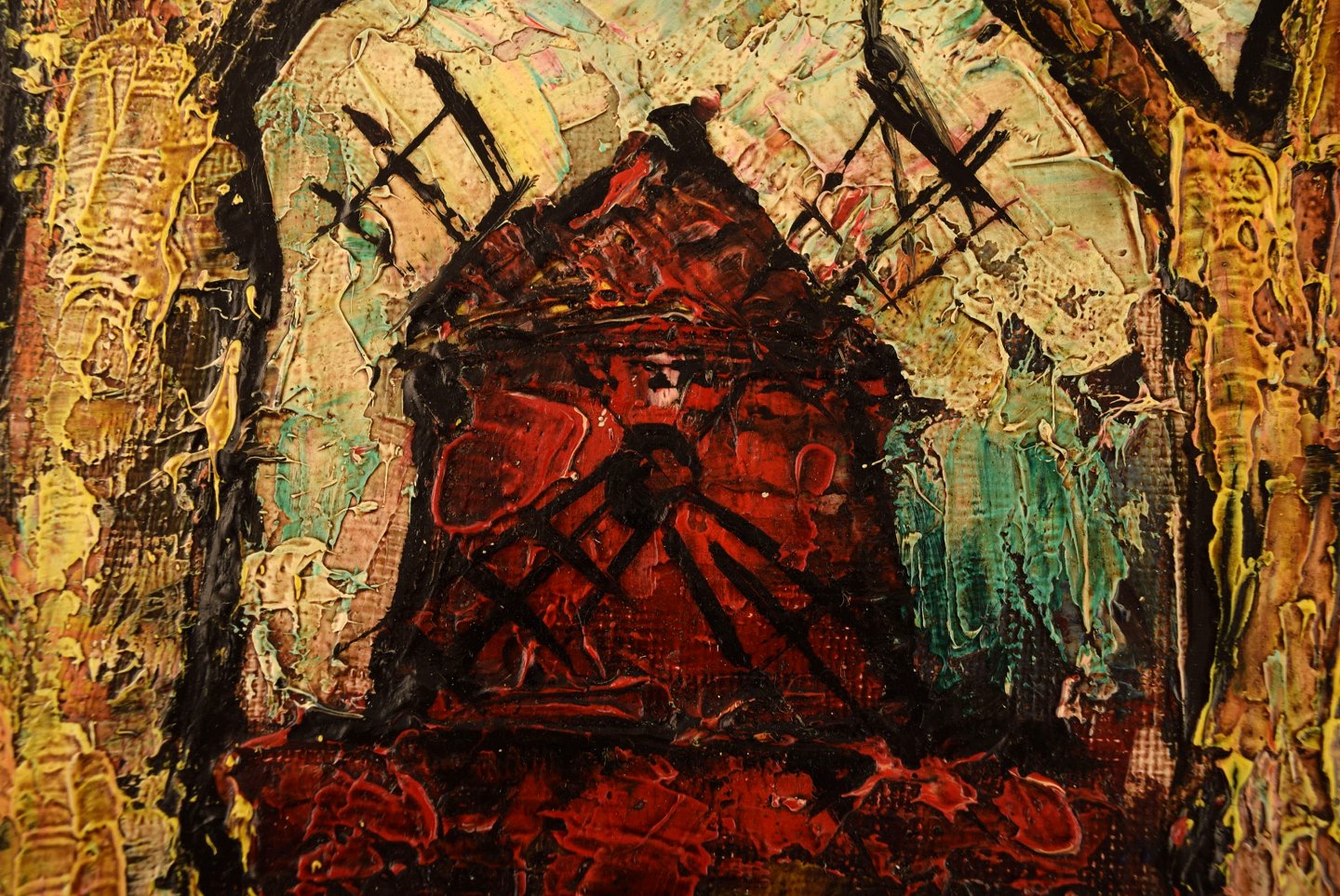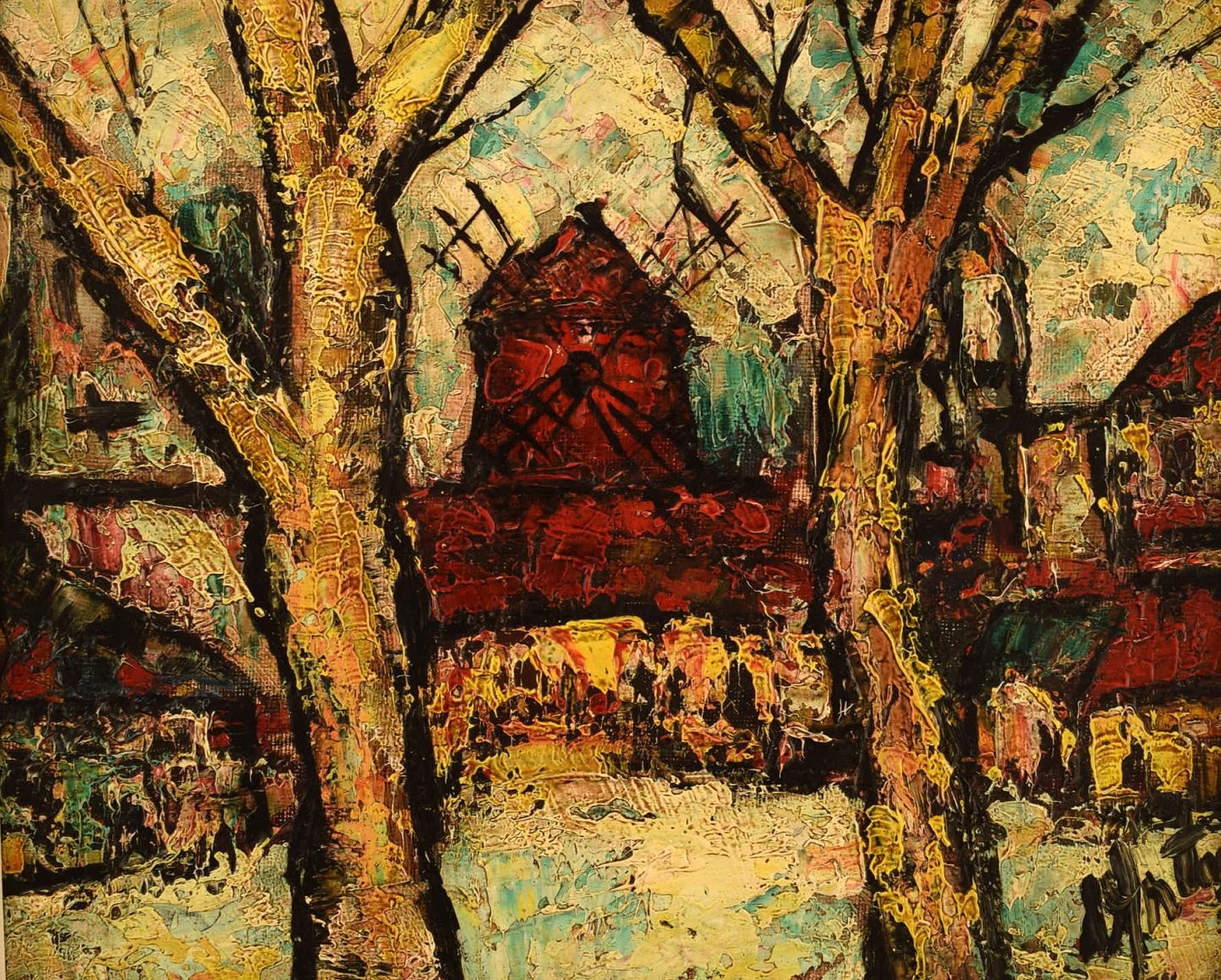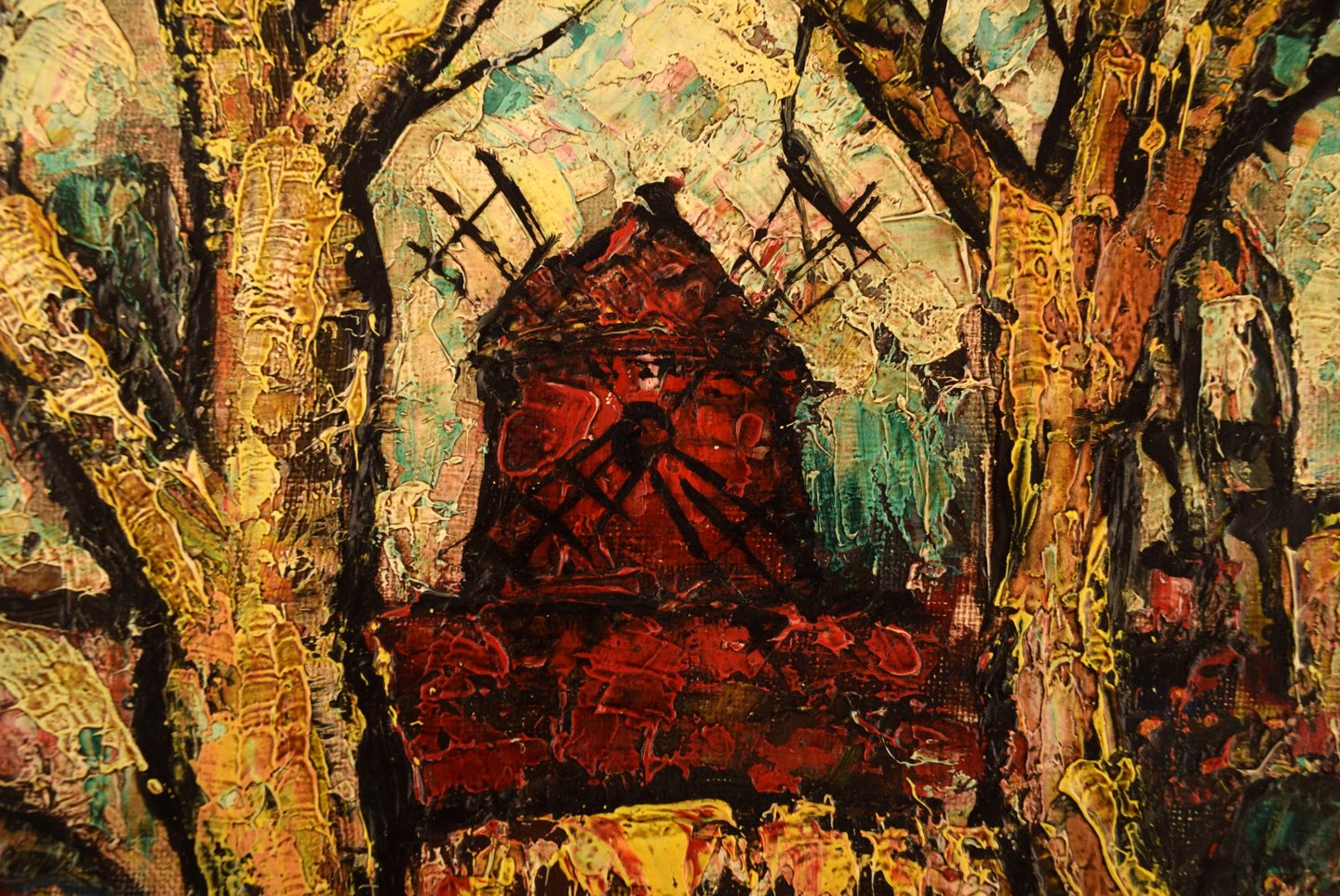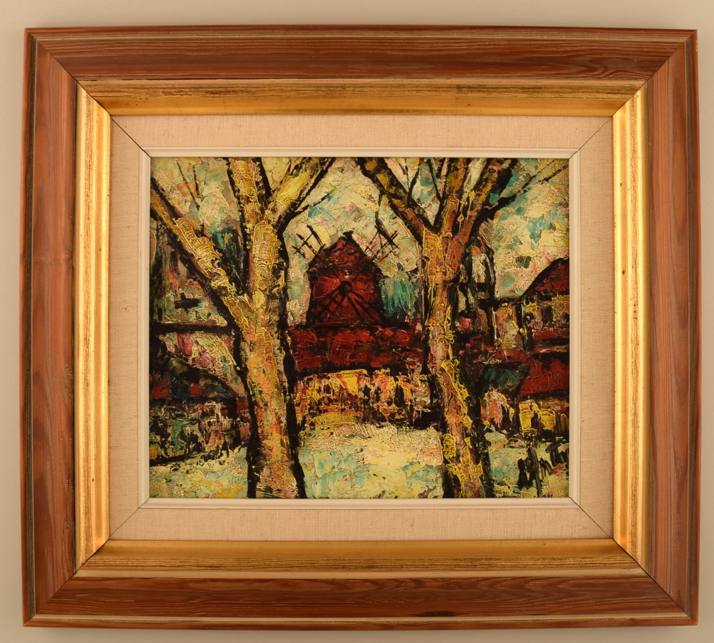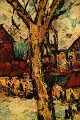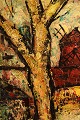 Henri Maurice D'ANTY (1910-1998) Ekspressionistisk fransk bymotiv med rød mølle. Olie på lærred. Ca. 1960'erne. I flot stand. Signeret. Måler: 26 x 21 x 8,5 cm.