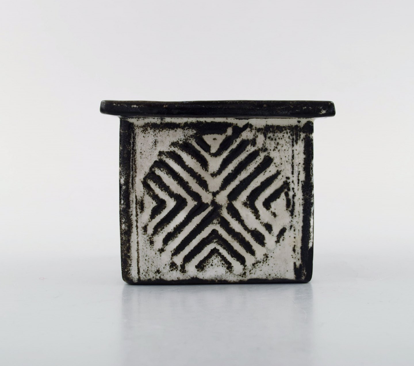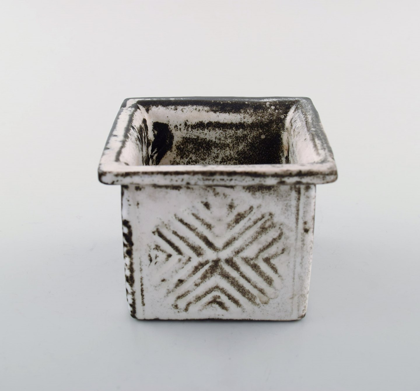 Svend Hammershøi for Kähler, HAK, firkantet vase / urtepotteskjuler i glaseret stentøj.