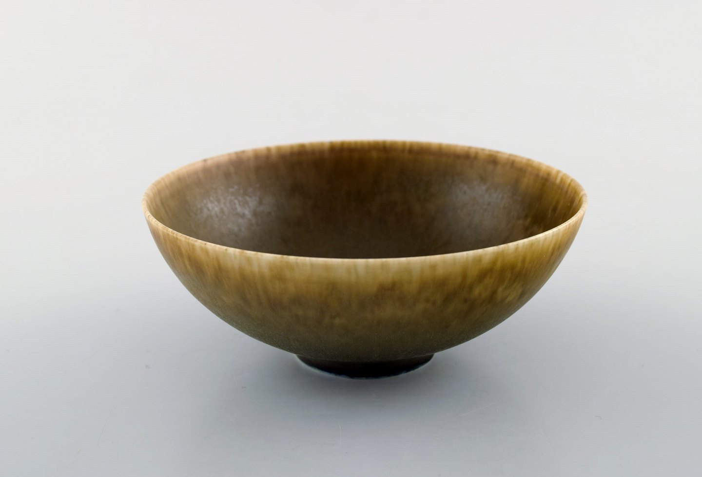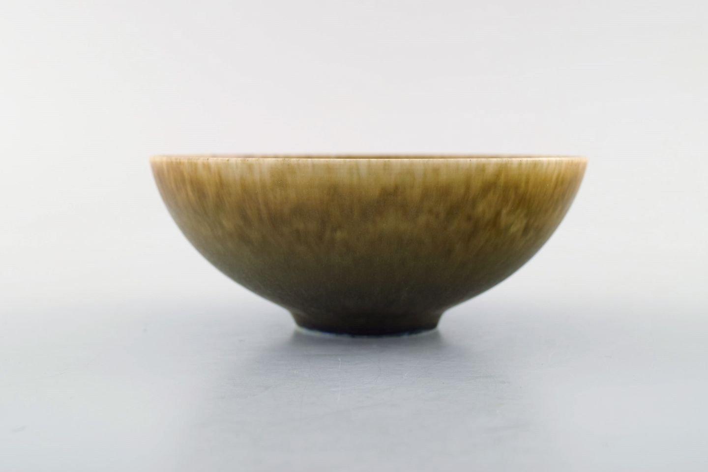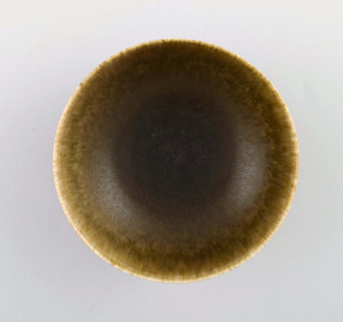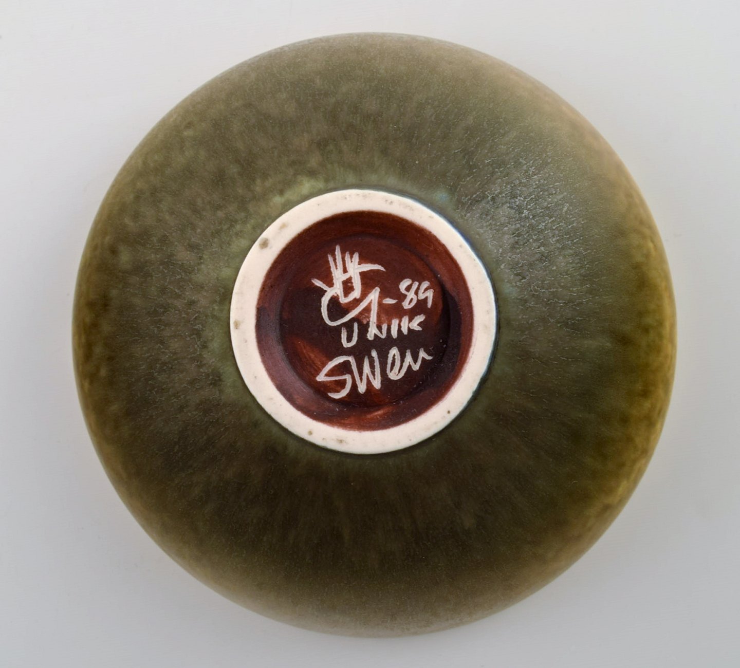 Sven Wejsfelt for Gustavsberg Studio Hand. Unika skål i glaseret keramik. 1989. Smuk glasur i grønne og gule nuancer. Signeret. I flot stand. Måler 11 x 4,5 cm.