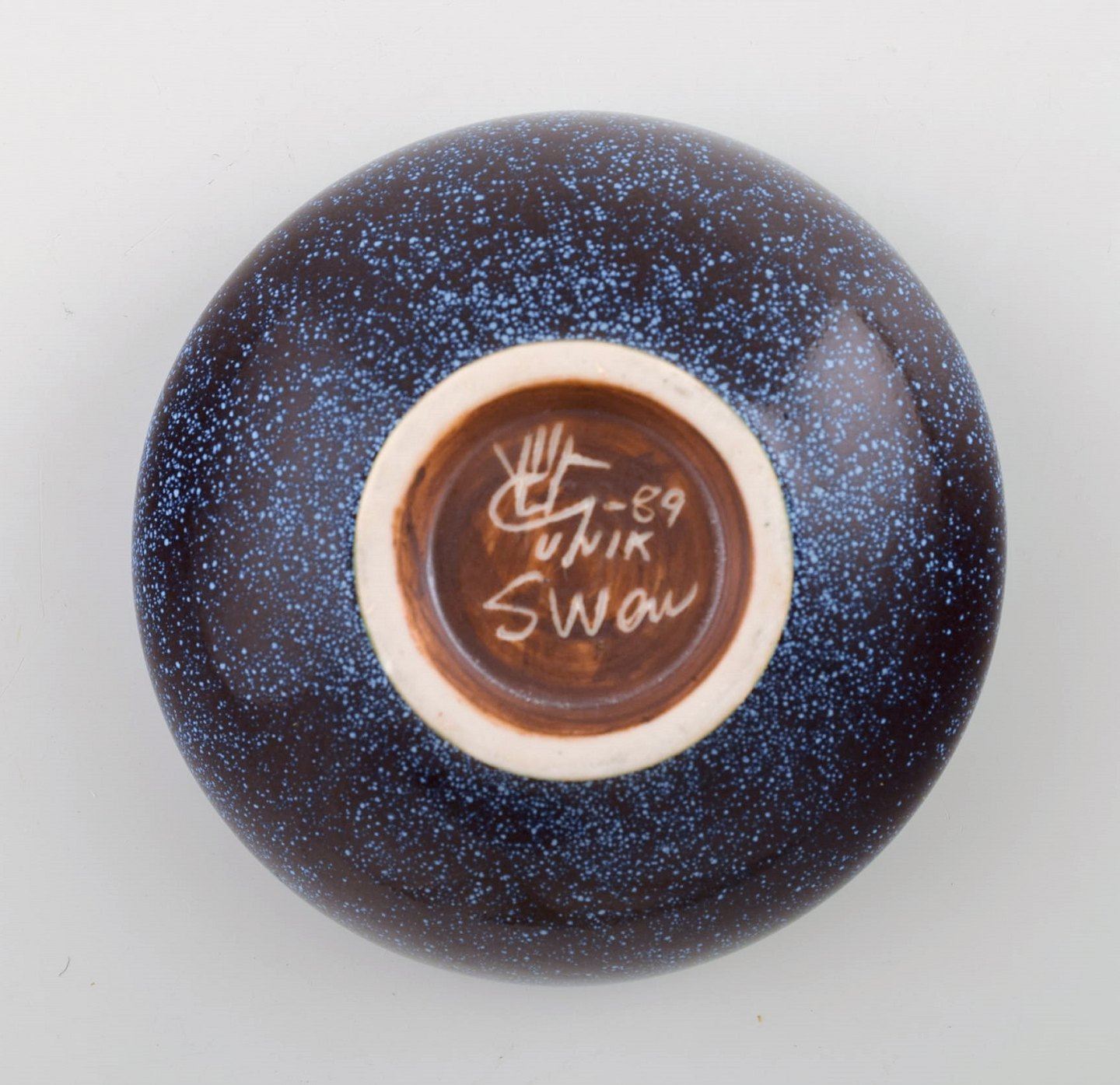 Sven Wejsfelt for Gustavsberg Studio Hand. Unika skål i glaseret keramik. 1989. Smuk glasur i blå nuancer. Signeret. I flot stand. Måler 11 x 4,5 cm.