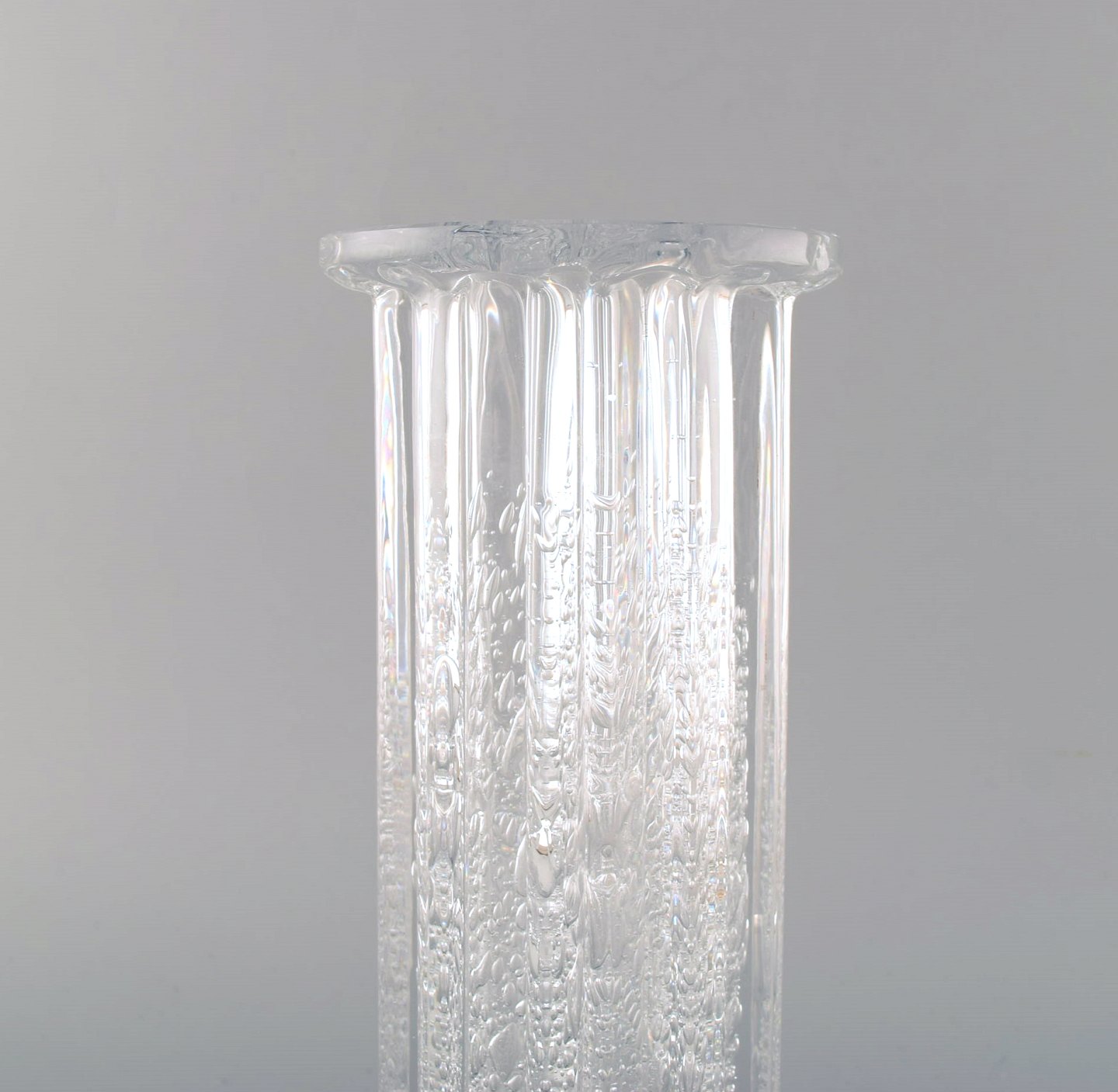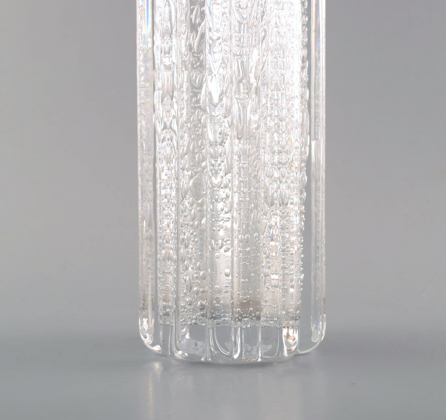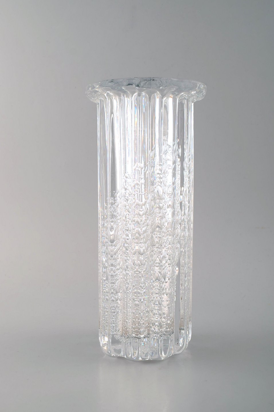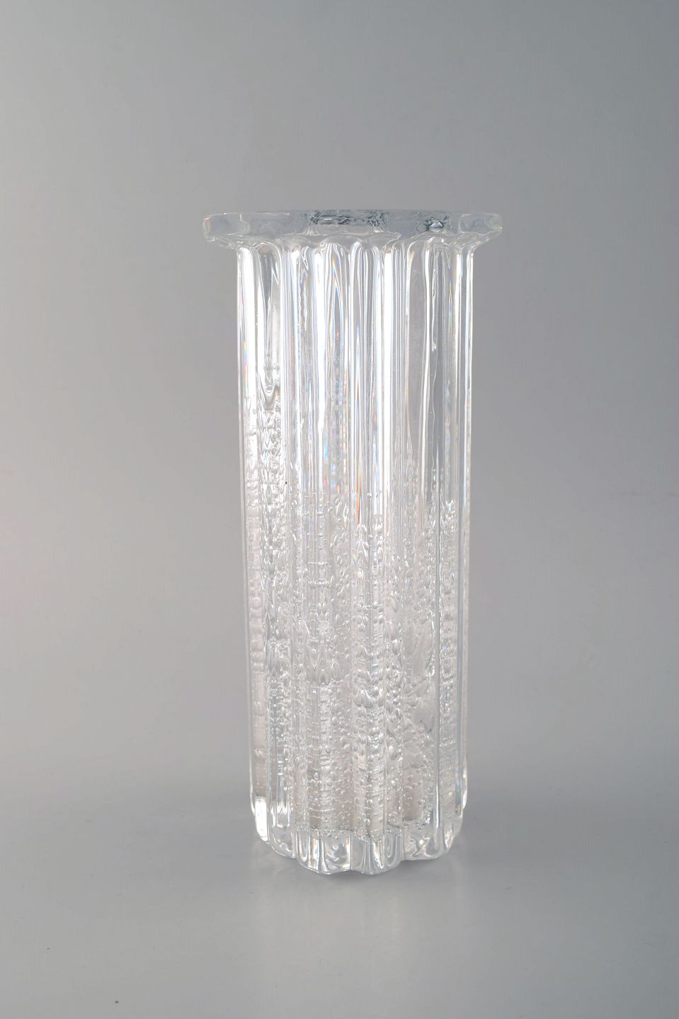 Willy Johansson for Hadeland, Norway. Ribbed "Atlantic" vase in clear art glass with bubbles. In very good condition. Signed. Measures: 26 x 12 cm.