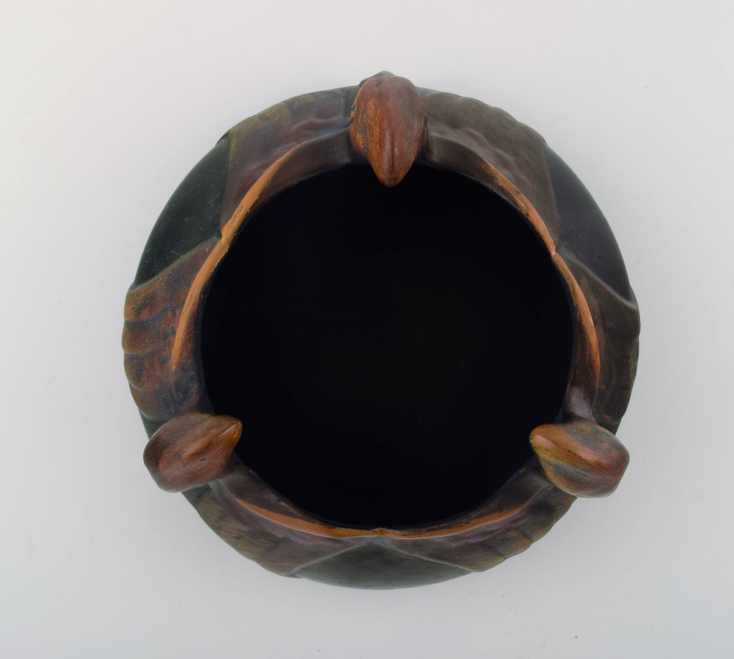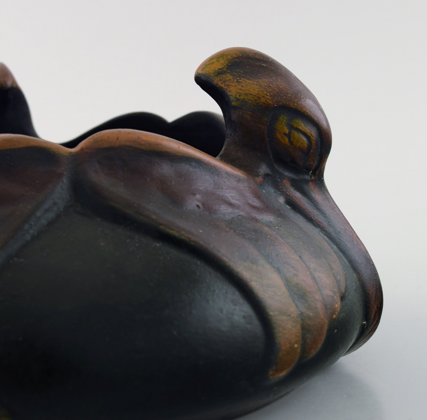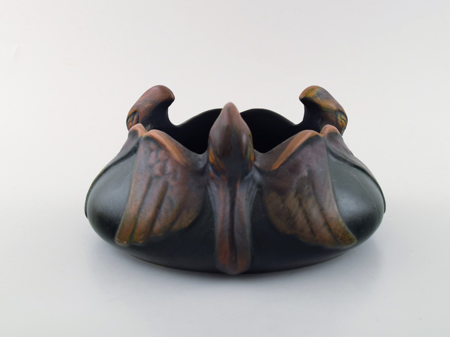 Sjælden Michael Andersen art nouveau skål med fugle i relief.