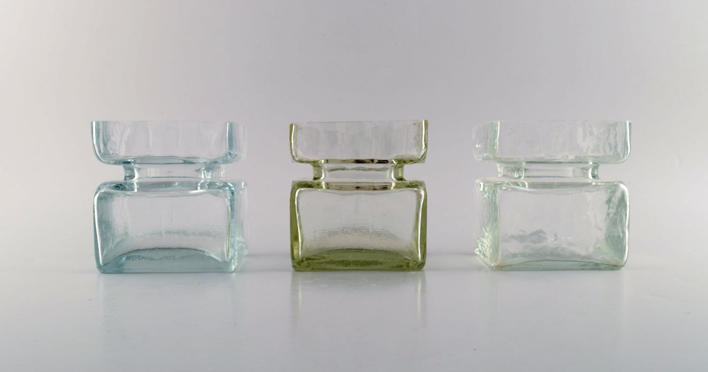 Helena Tynell for Riihimäen Lasi Oy. 3 vases in clear and light gray mouth blown art glass. 1960's. In very good condition. Measures: 12.5 x 10.5 cm.