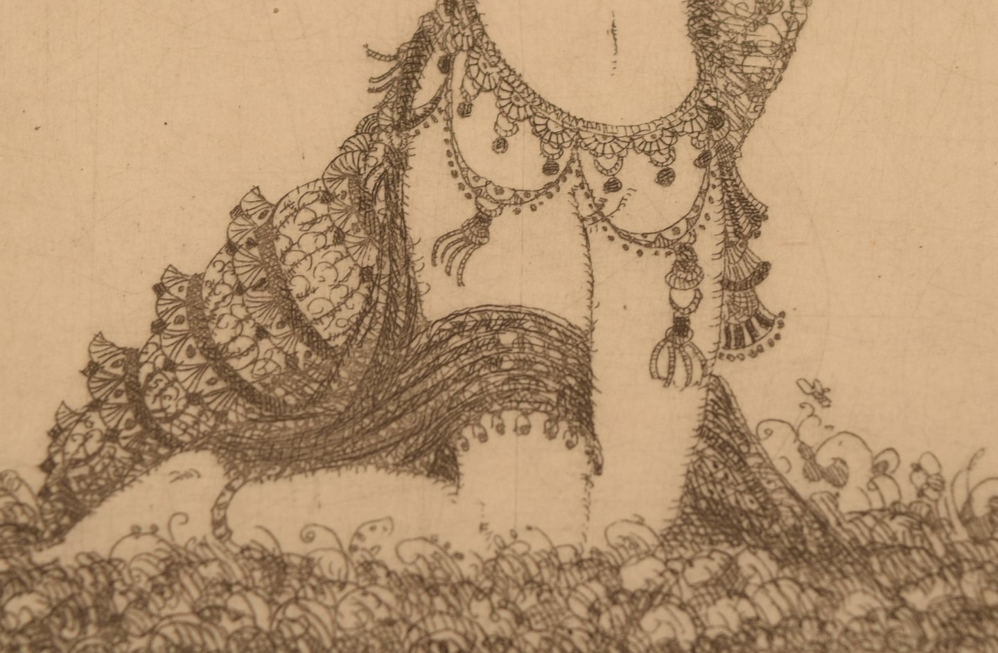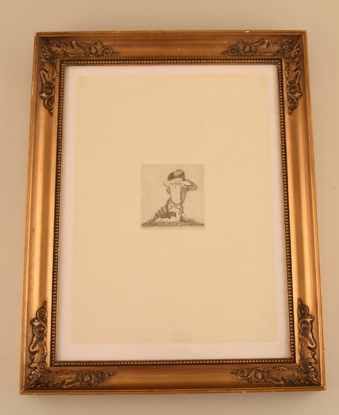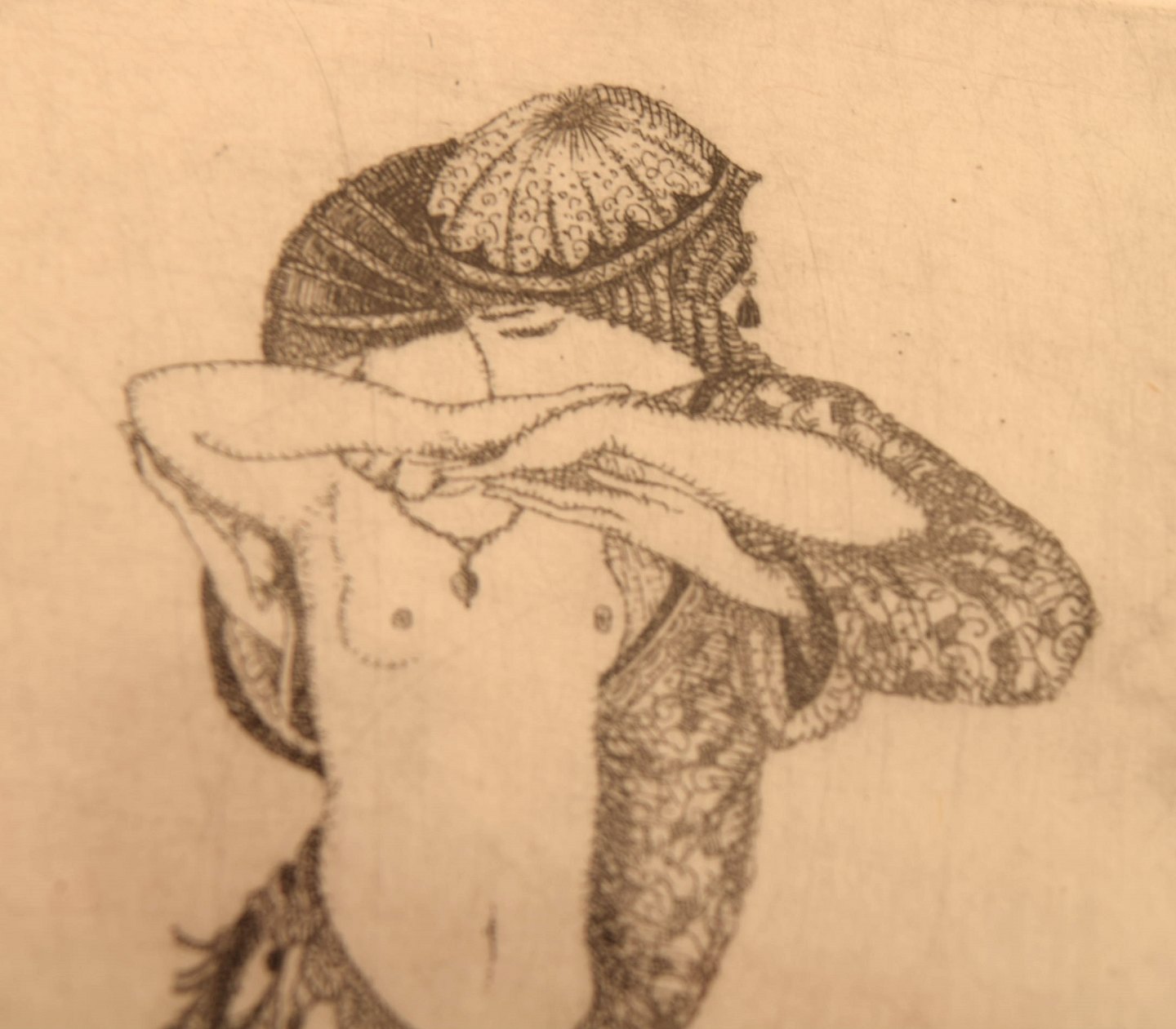 Gerhard Henning. Orientalsk nøgenstudie. Erotisk Radering på japanpapir. 1915.