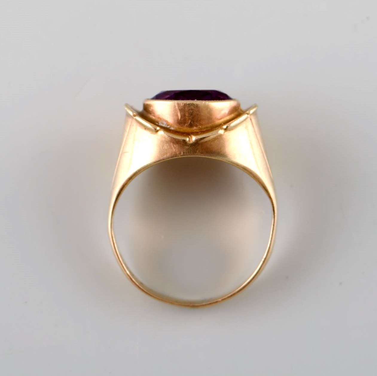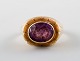 Danish goldsmith. 14 carat art deco gold ring adorned with purple stone.