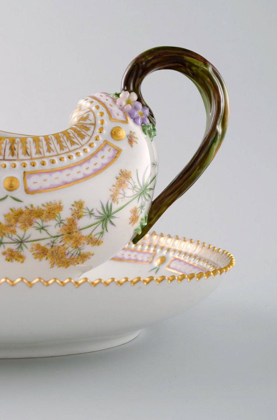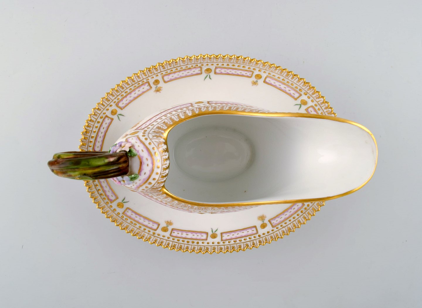 Royal Copenhagen Kongelig porcelæn Flora Danica saucekande/sovsekande, håndmalet med blomster. Måler: 24 x 18 x 15 cm I perfekt stand. 1. sortering. Modelnummer: 20/3556
