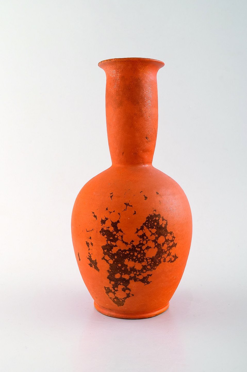 Svend Hammershøi for Kähler, HAK. Vase i glaseret stentøj. Smuk orange uranglasur. I flot stand. Stemplet. Måler 23,5 x 12 cm.