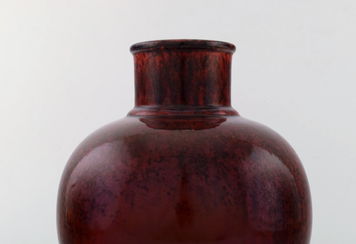 Paul Milet for Sevres. Art deco keramikvase i smuk håndmalet okseblodsglasur. Frankrig, ca. 1930.