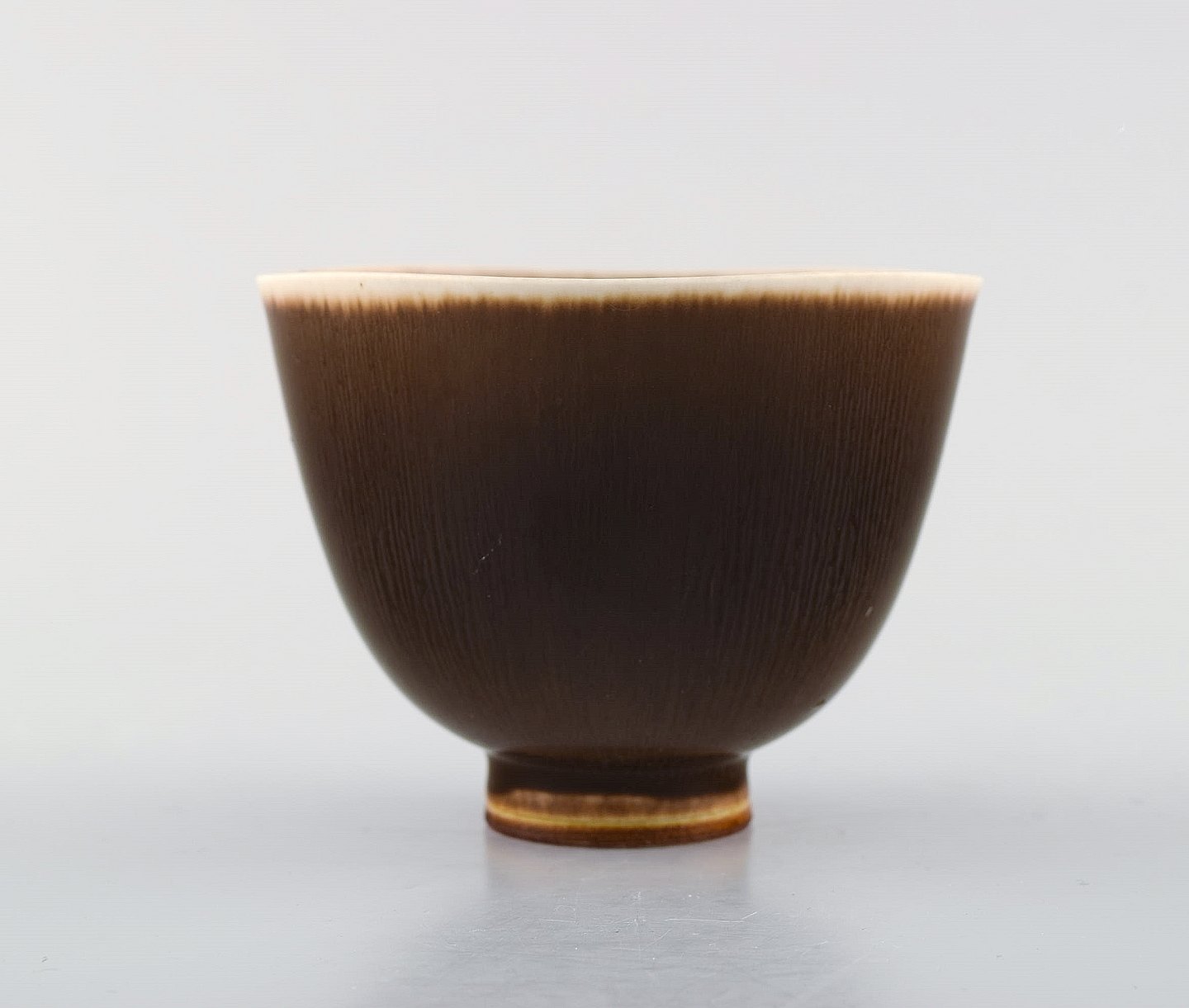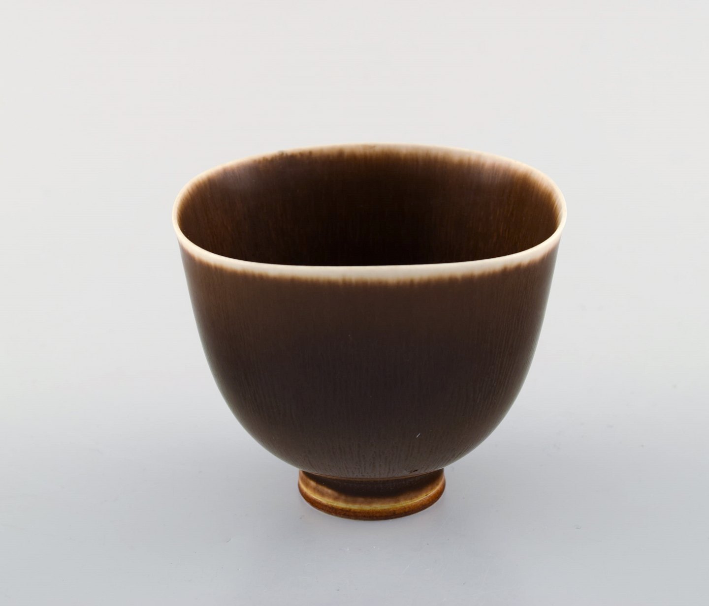 Berndt Friberg Studio keramik skål. Moderne svensk design. Unika, håndlavet. Fantastisk glasur i brune nuancer. 1956. 1. sortering. Signeret og dateret. I flot stand. Måler : 9 x 7,5 cm.