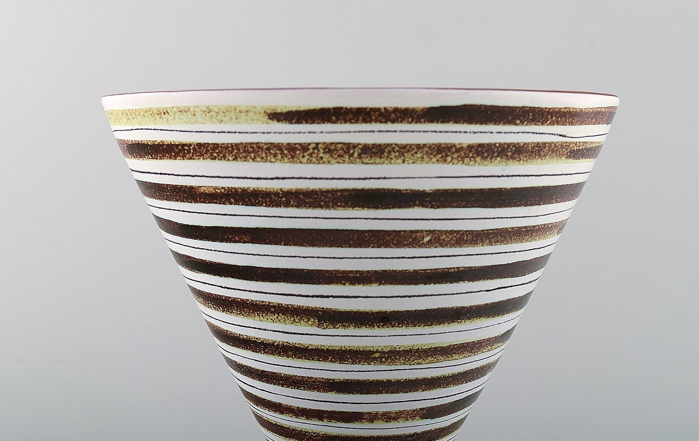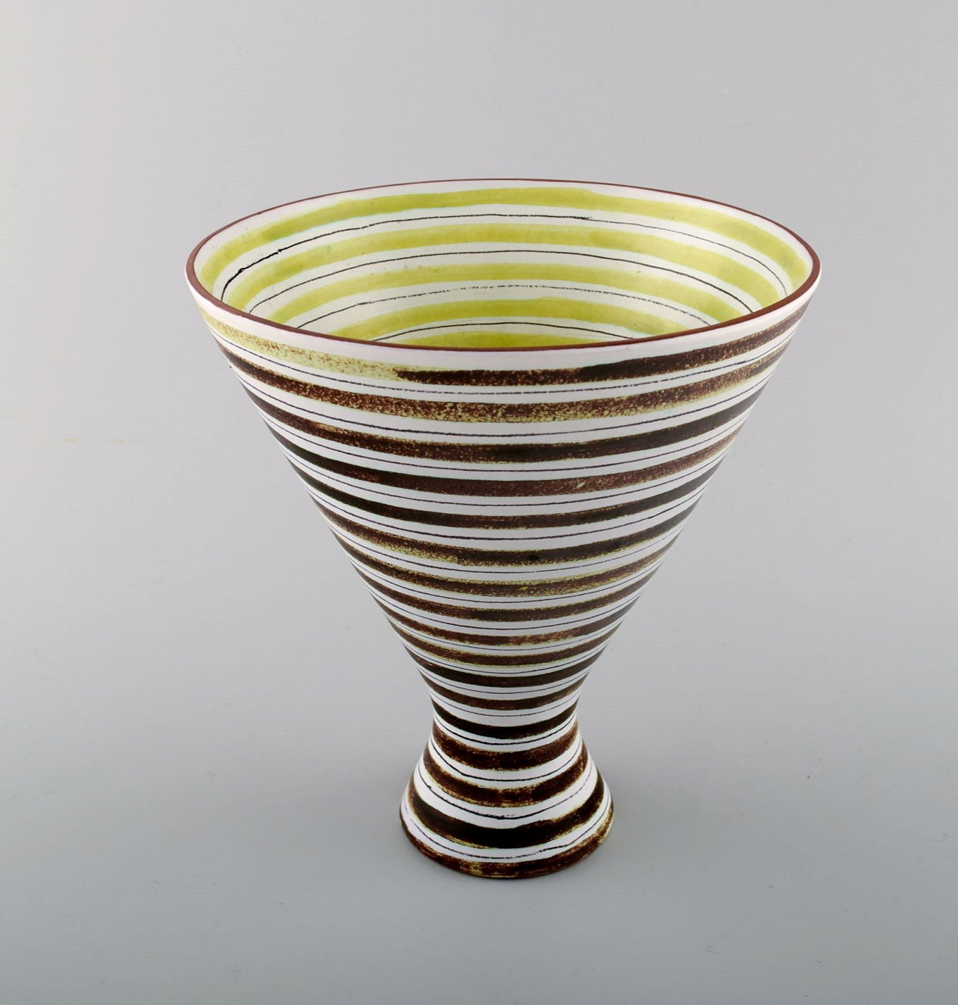 Gustavsberg, Sverige, hånddrejet og håndmalet vase i fajance af Stig Lindberg, svensk keramiker. Sjælden form. Måler: 21 cm. høj. Diameter 19 cm. Stemplet: Gustavsberg og Studio Hand I perfekt stand.