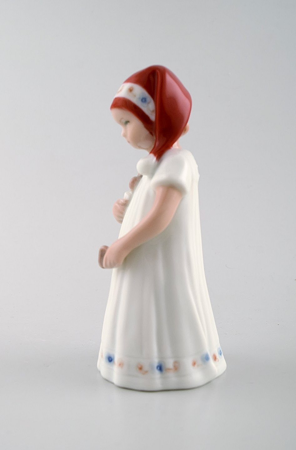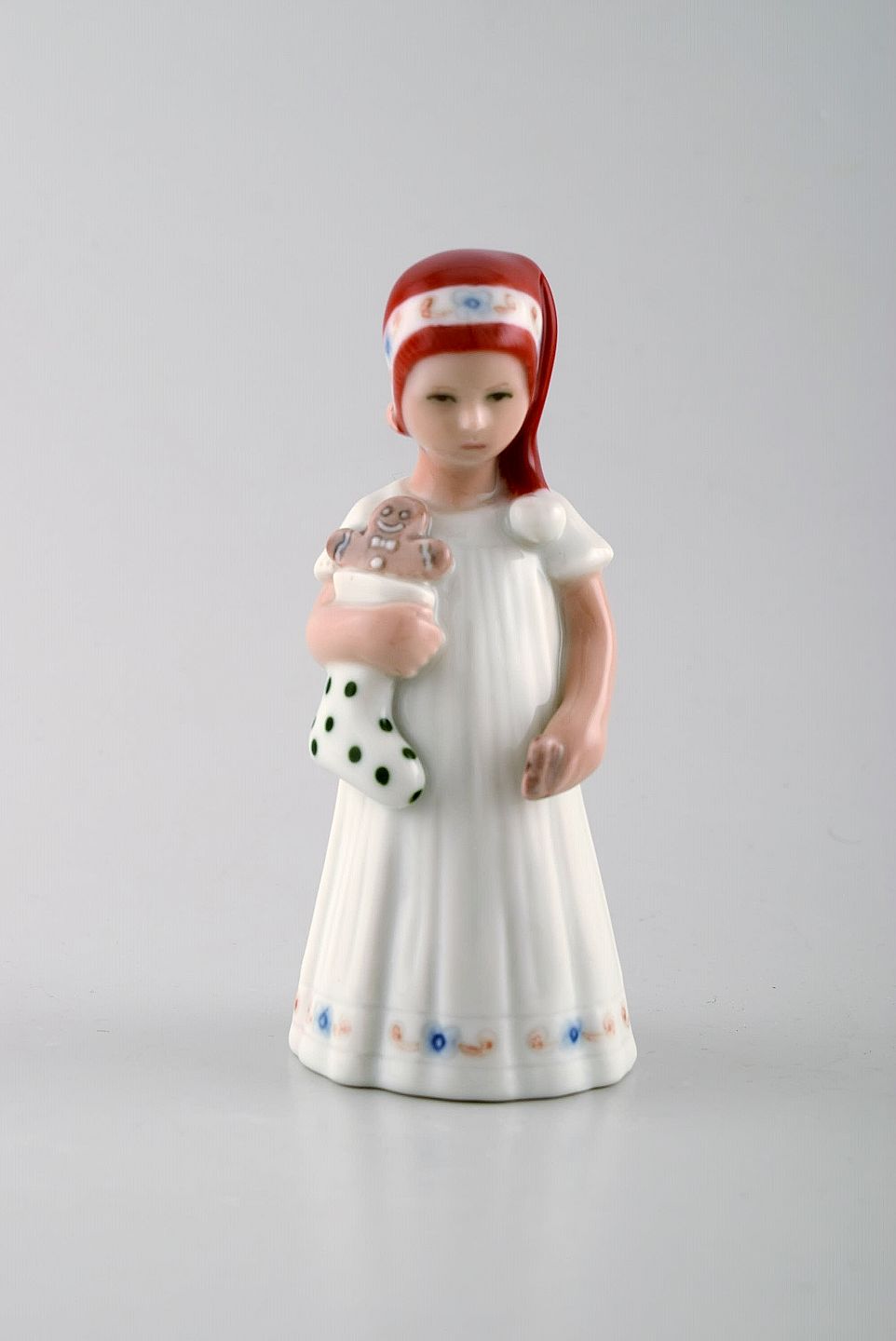 Sjælden Royal Copenhagen porcelænsfigur. Pige med julesok og kagemand. Modelnummer 093.