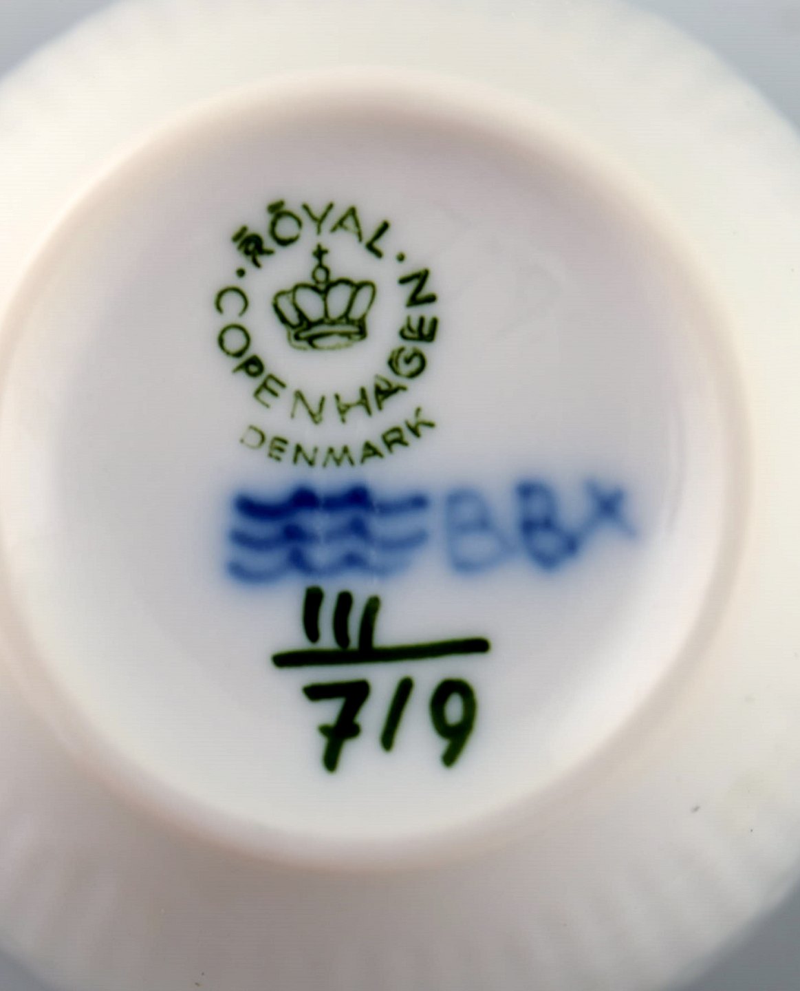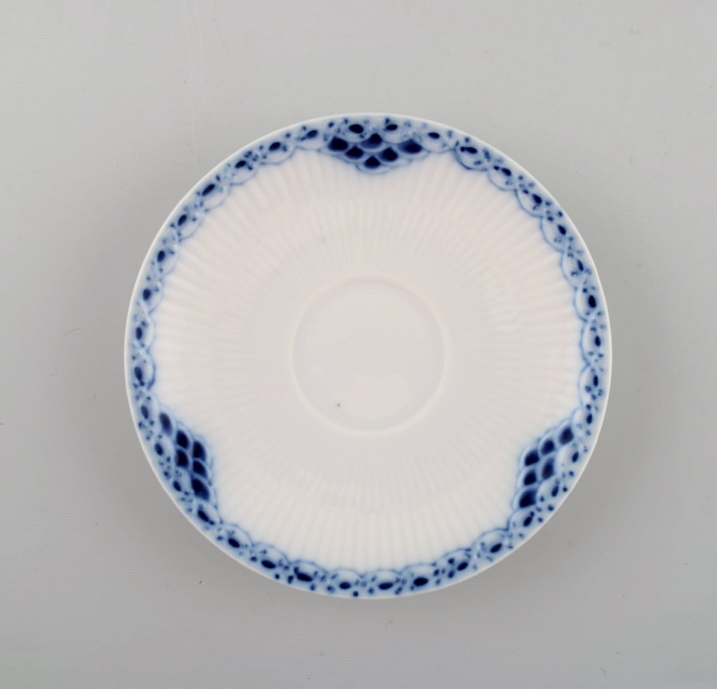 Royal Copenhagen blåmalet Prinsesse kaffekop med underkop i porcelæn. Sæt på 6 stk. Modelnummer 719. 2. sortering. I perfekt stand. Koppen måler: 7 x 6,5 cm. Underkoppen: 12,5 cm.