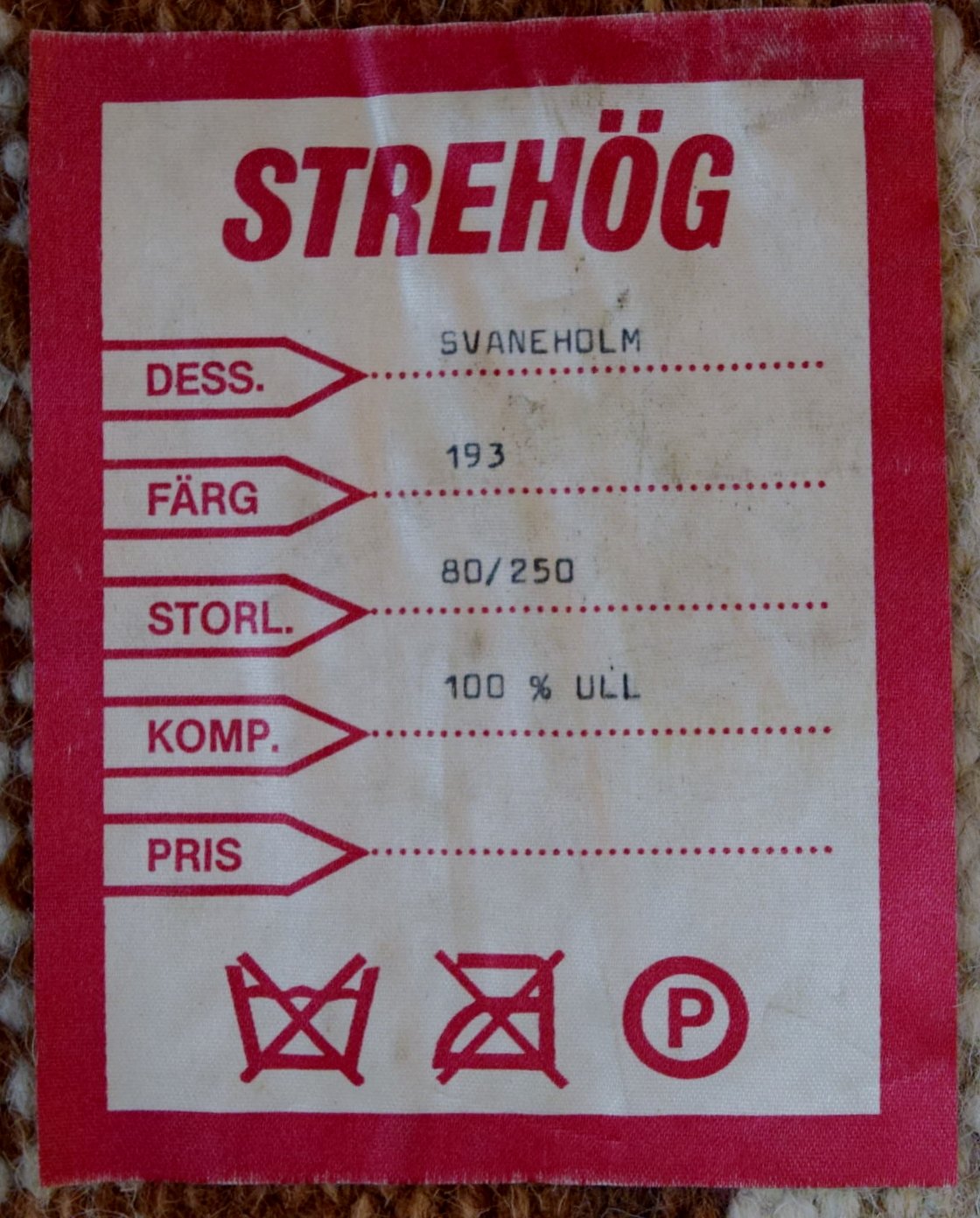RÖLAKAN, svensk design 1970´erne. Løber / tæppe i ren uld. Dessin: Svaneholm. Måler 277 cm x 81 cm. I flot stand.