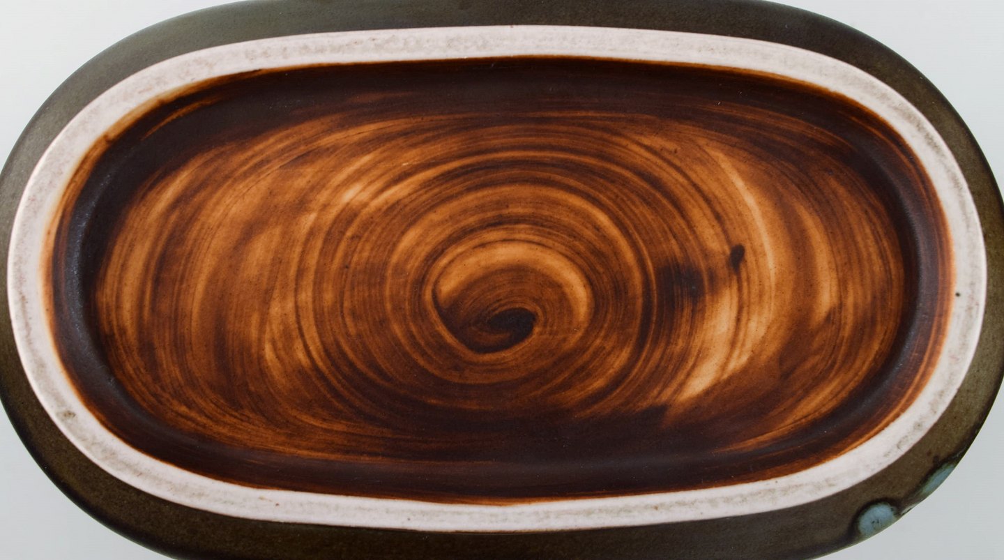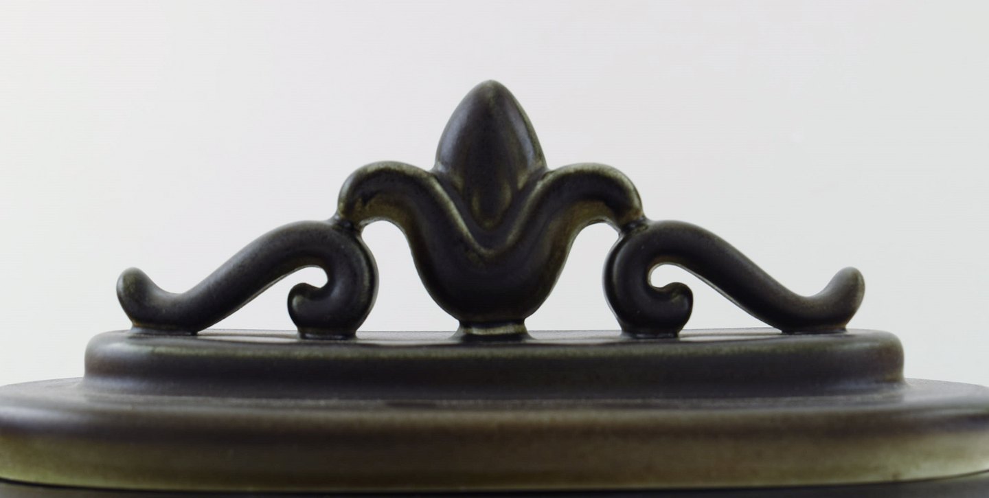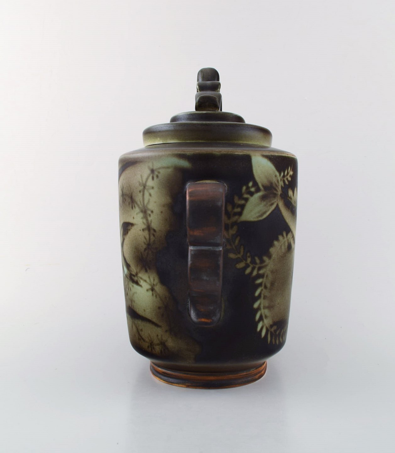 Gunnar Nylund for ALP Lidköping. Stor unika hånddrejet art deco Flambé lågkrukke med tropiske fisk. 1930'erne. I flot stand. Måler: 27 x 23 cm.