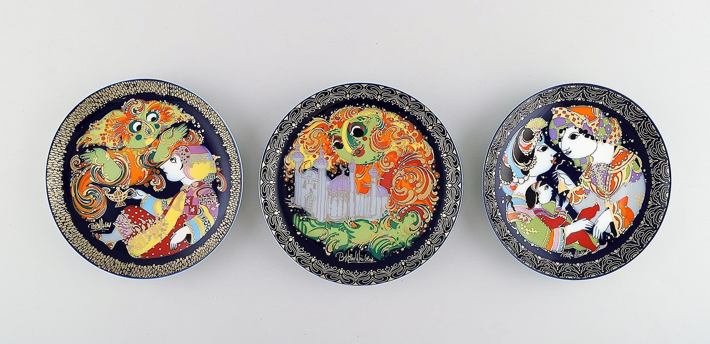 Bjørn Wiinblad for Rosenthal. Set of three plates from the Aladdin series. 1970's. Measures: 16 x 2 cm. In very good condition. Stamped.