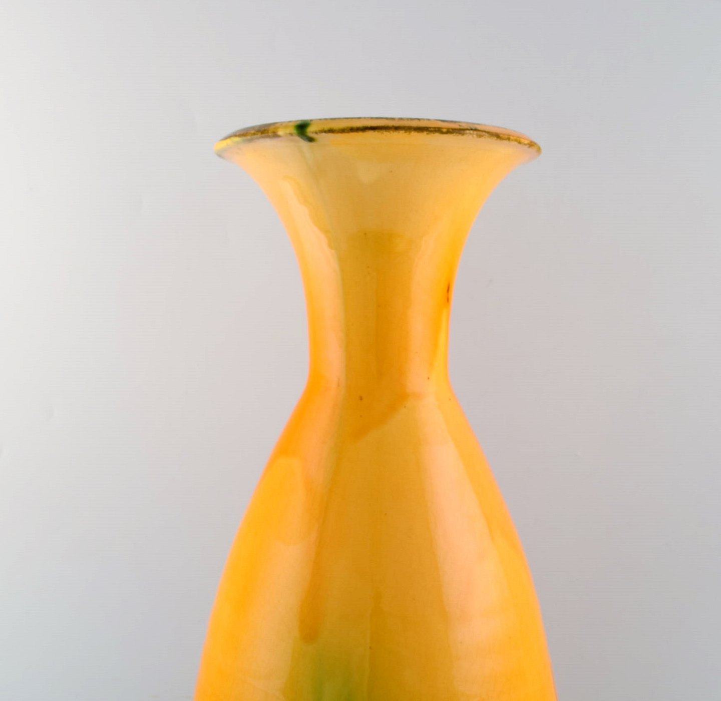 Svend Hammershøi for Kähler, HAK. Stor glaseret gulvvase i stentøj. Smuk urangul glasur. 1930/40'erne. I flot stand. Stemplet. Måler: 42 x 22 cm.