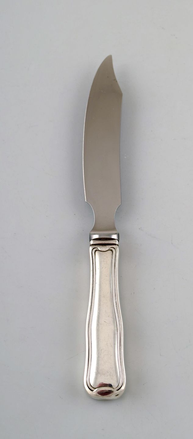 Sjælden Georg Jensen dobbeltriflet jagtkniv i sterlingsølv. I flot stand. Måler: 20 cm. Stemplet. Stort udvalg af Georg Jensen Dobbeltriflet på lager.