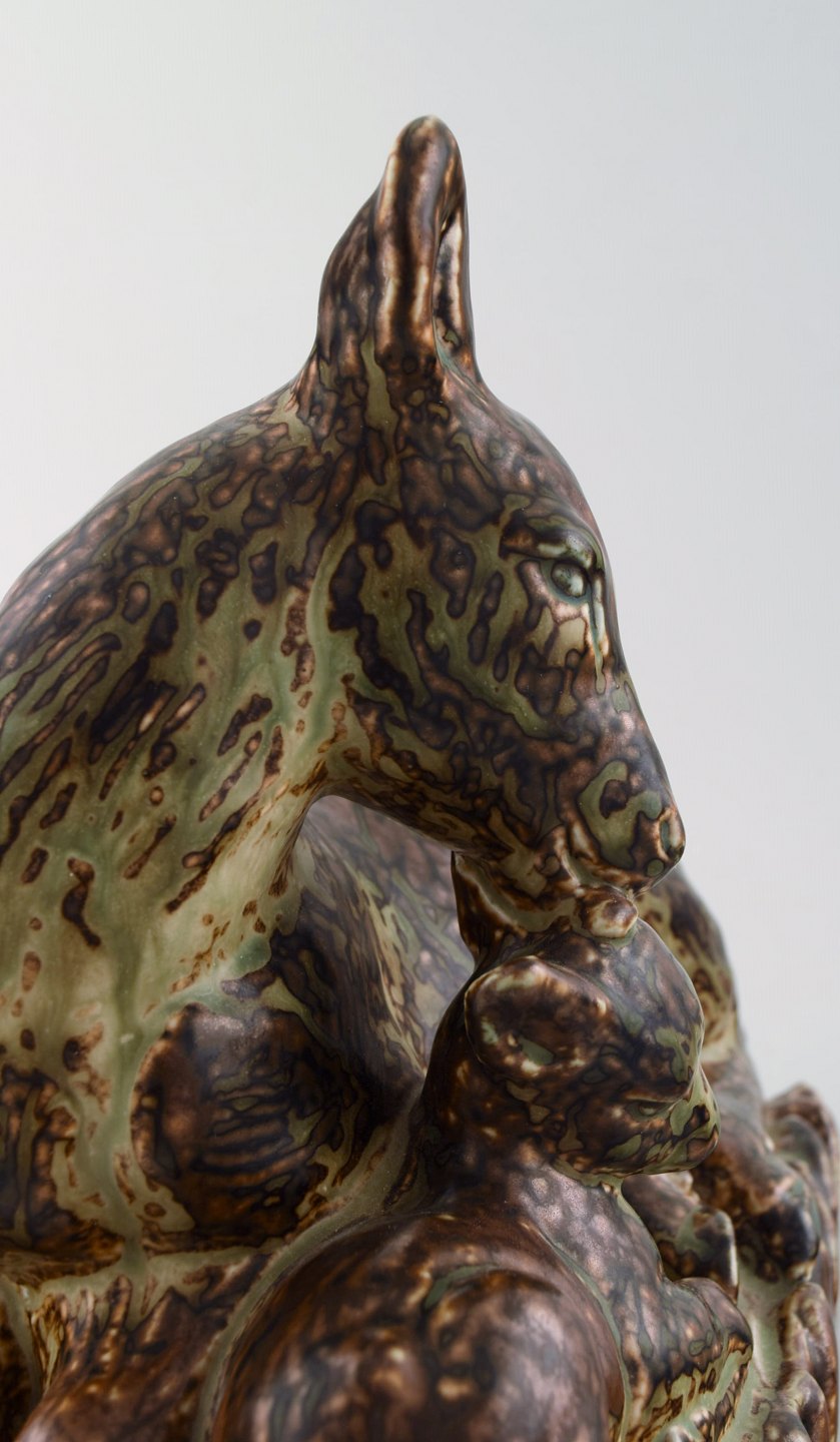 Knud Kyhn for Royal Copenhagen. Stor stentøjsfigur nr. 21239. Hjort med kid. Dateret 1957.