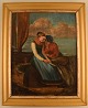 Engelsk genremaler. Romantisk scene. Ungt par. Olie på lærred. 1800-tallet.