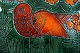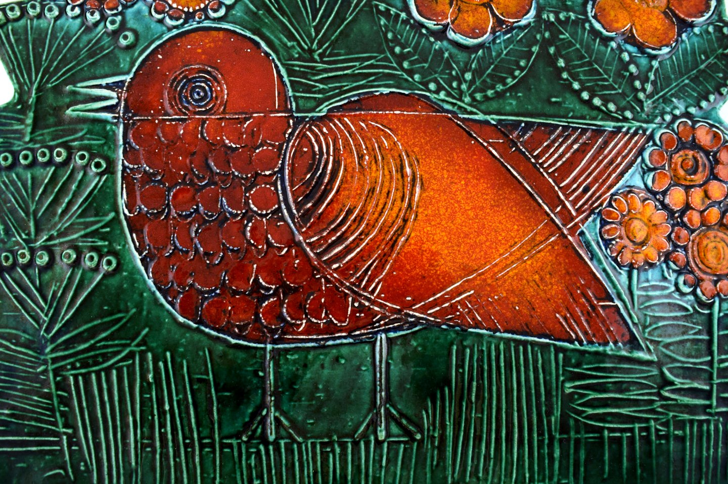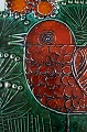 Lisa Larson for Gustavsberg. Stor og sjælden vægdekoration. Rød fugl på grøn baggrund. 1960'erne.