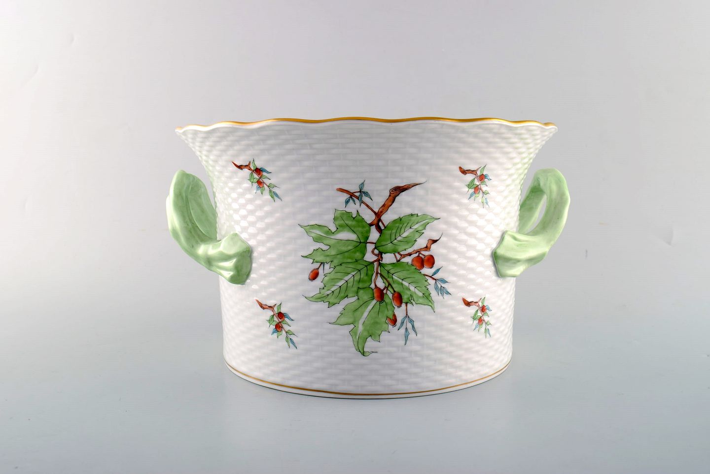 Herend champagnekøler i porcelæn udsmykket med bær og blade. Midt 1900-tallet.