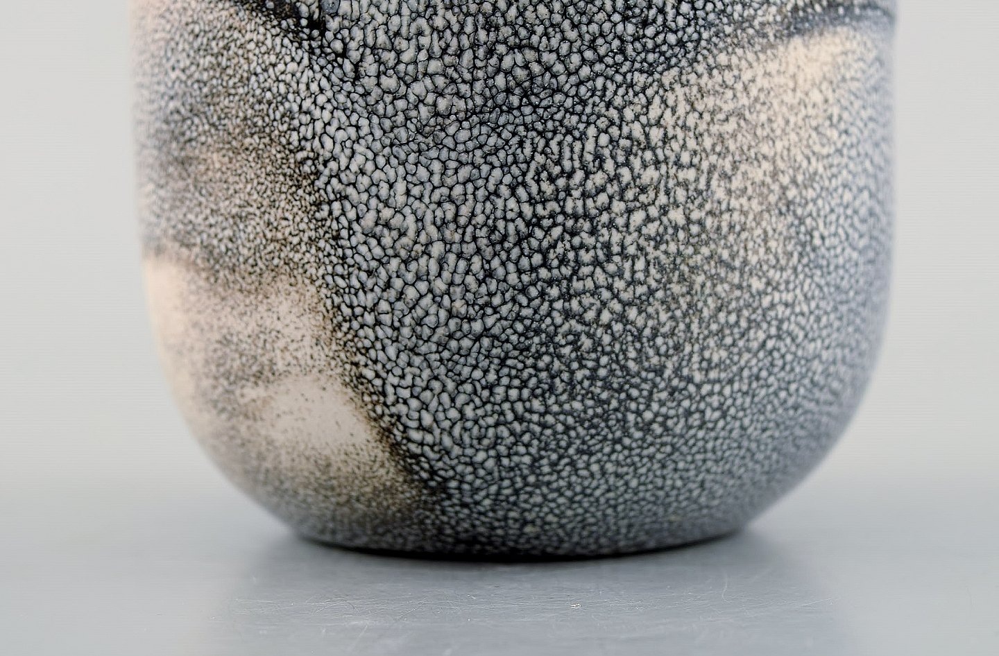 Kähler, HAK, vase i glaseret stentøj, 1930'erne. Designet af Svend Hammershøi. Smuk gråsort dobbeltglasur. Måler : 9 x 8,5 cm. Stemplet. I flot stand.