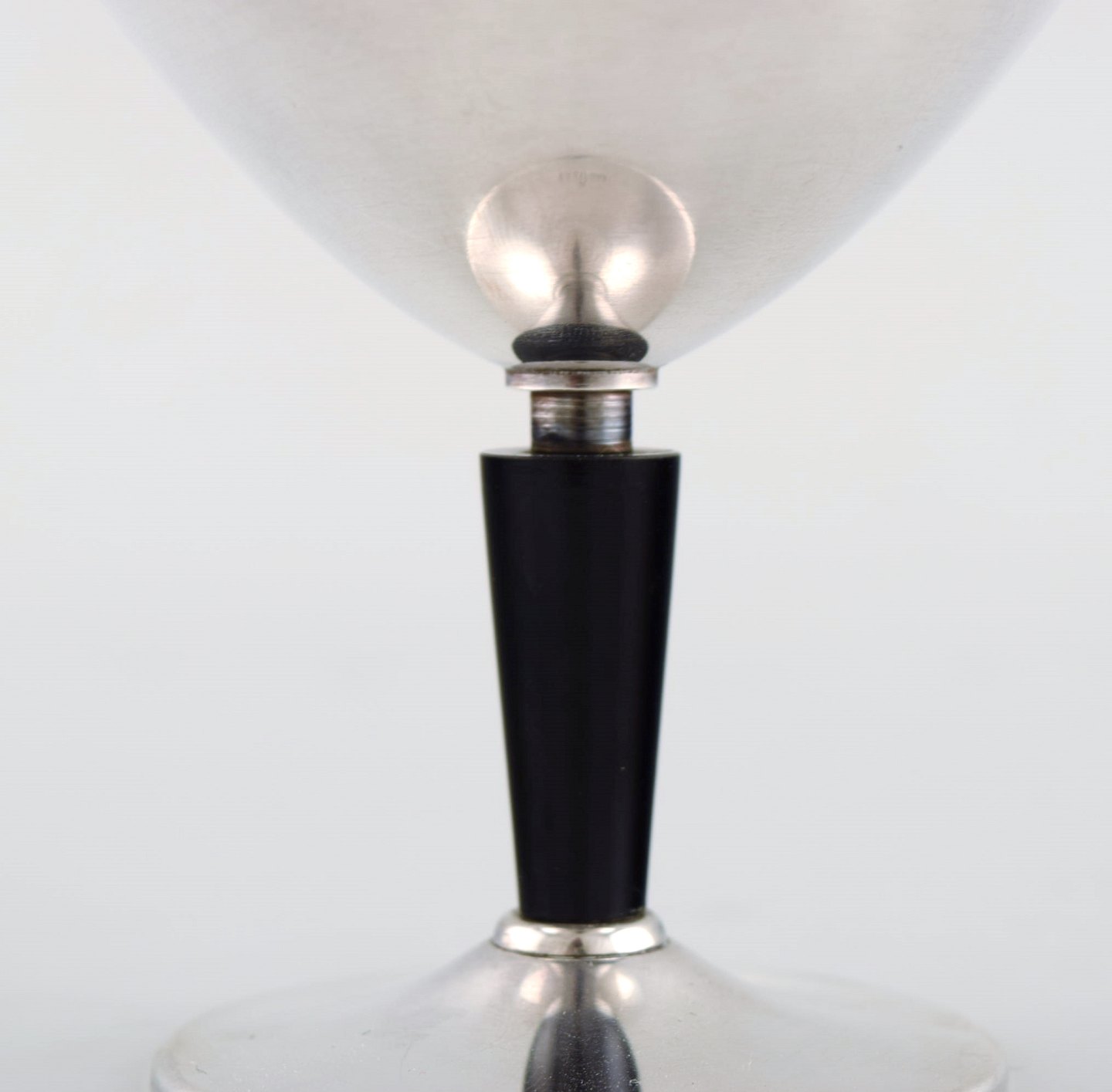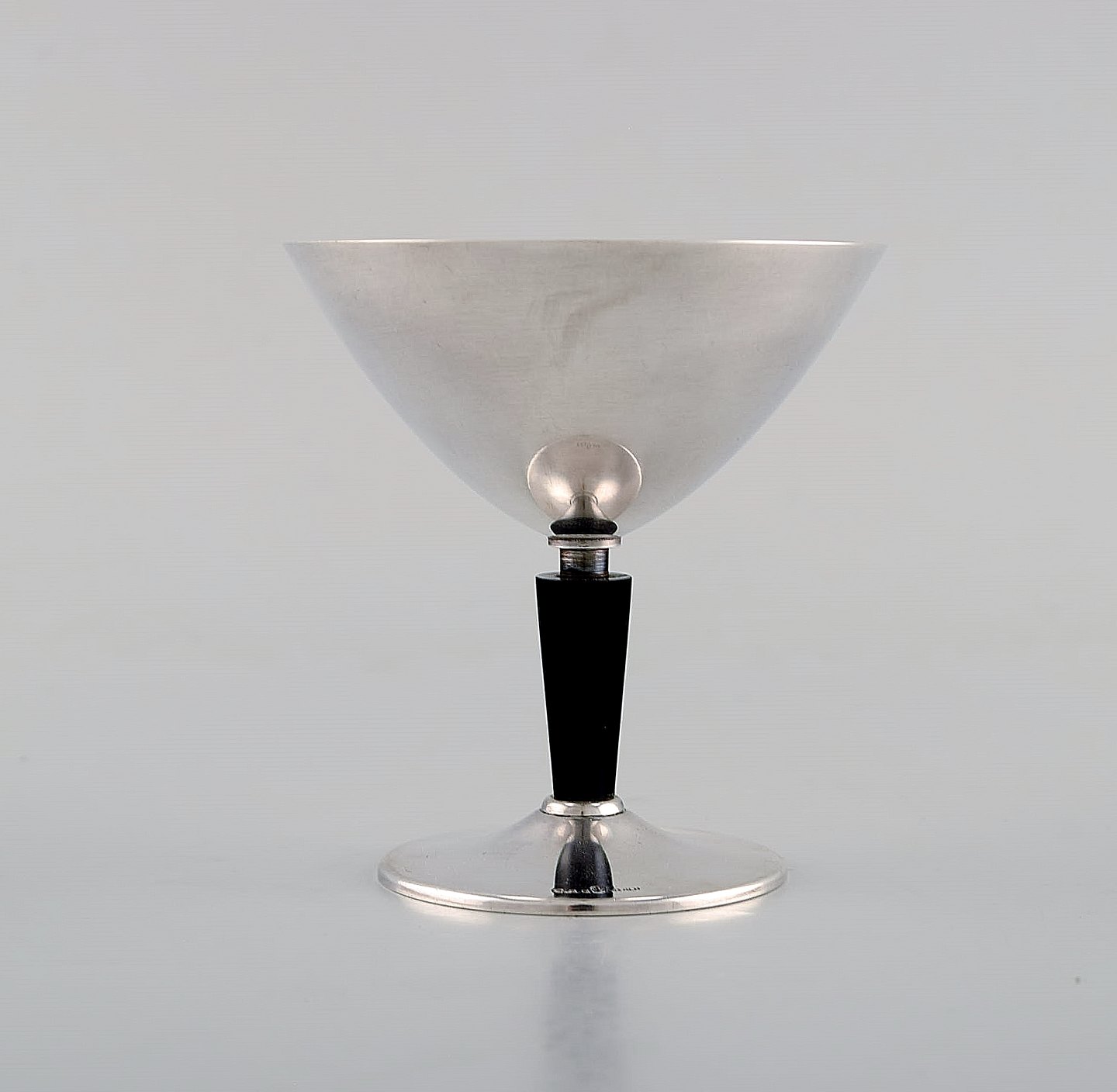 Folke Ahlström for GAB. Otte modernistiske cocktailglas i nysølv med indvendig forgyldning. 1950'erne. Måler: 9 x 8,3 cm. I flot stand. Stemplet.