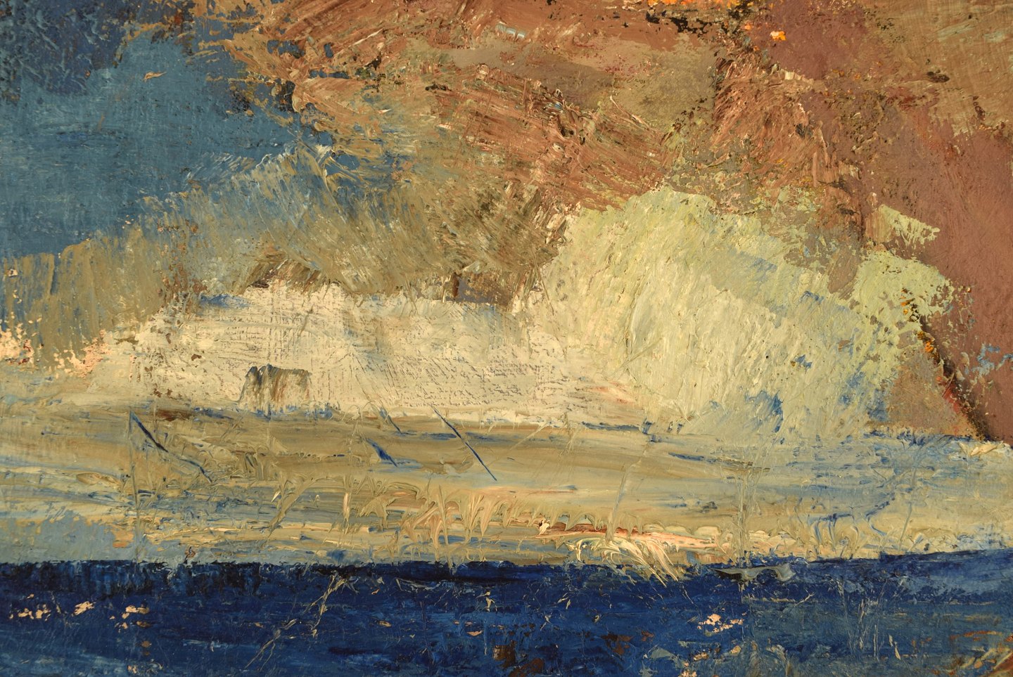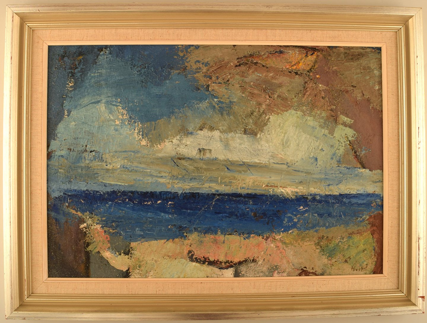 Torsten Hult (1922-2012). Svensk kunstmaler. Olie på plade. Modernistisk landskab. Dateret 1959.