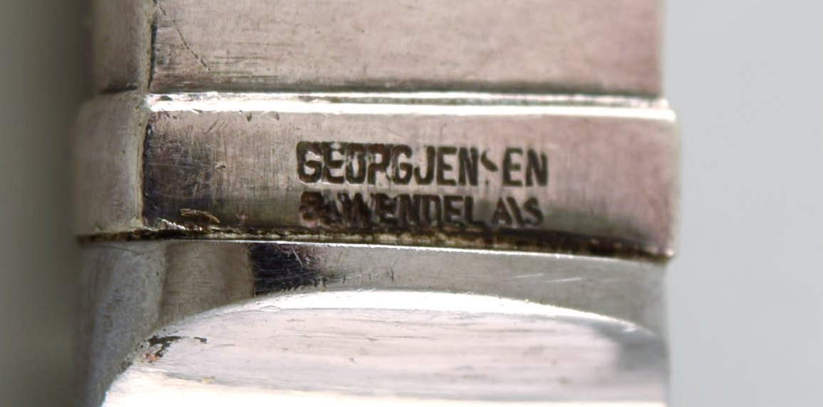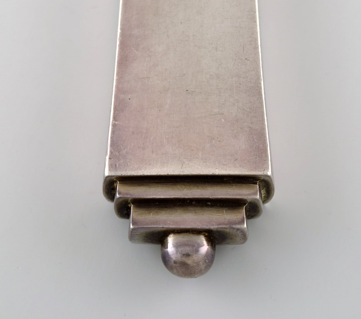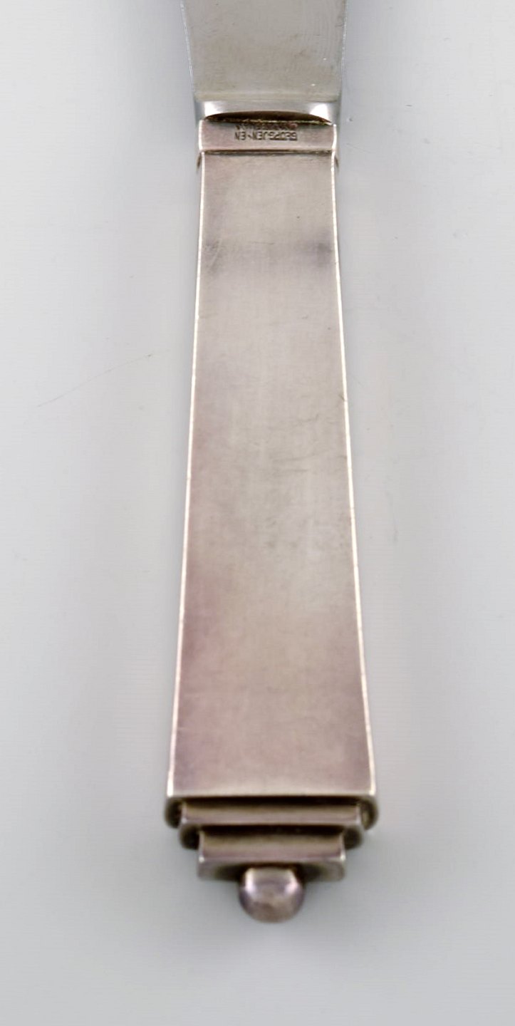 Georg Jensen "Pyramide" middagskniv. Sjælden stor model, dateret 1945-51. Designet af Harald Nielsen 1927. I flot stand. Måler: 25 cm. Tidligt stempel: 1945-51.