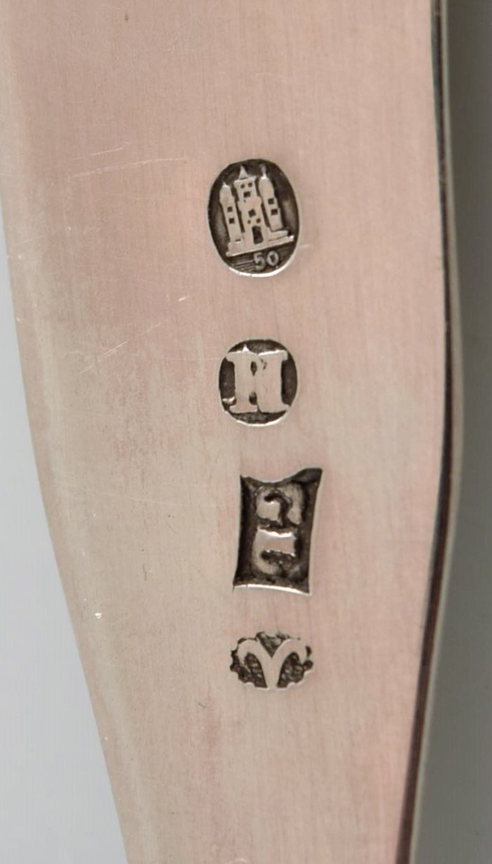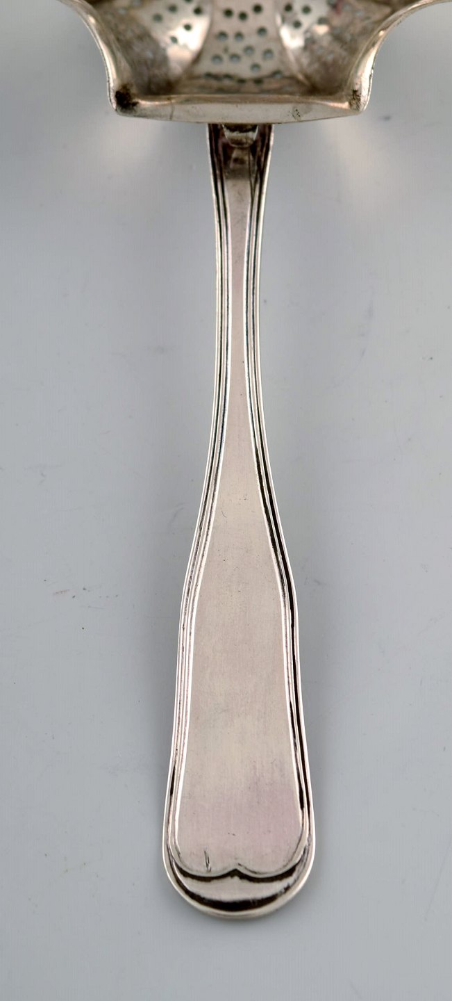 Dansk tesi i sølv. Dateret 1950. Måler: 18,3 x 6 cm. I flot stand. Stemplet.
