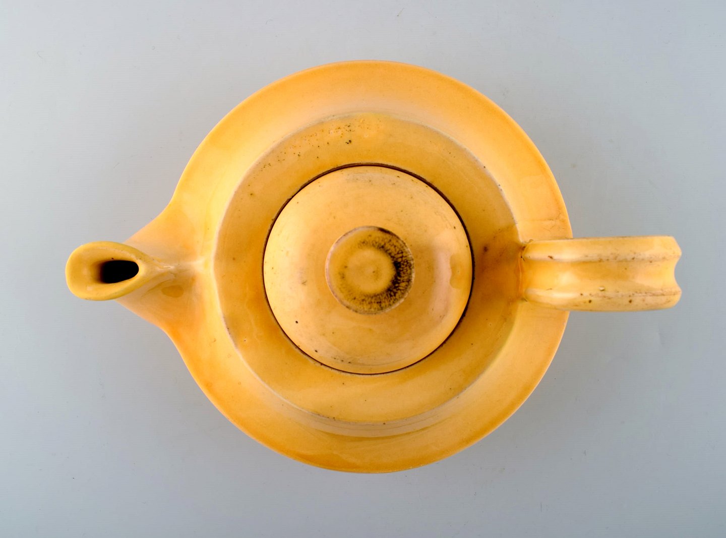 Kähler, Denmark. Glazed ceramic teapot. Beautiful uranium yellow glaze. 1930 / 40's. Measures: 26 x 13 cm. Stamped. In very good condition.