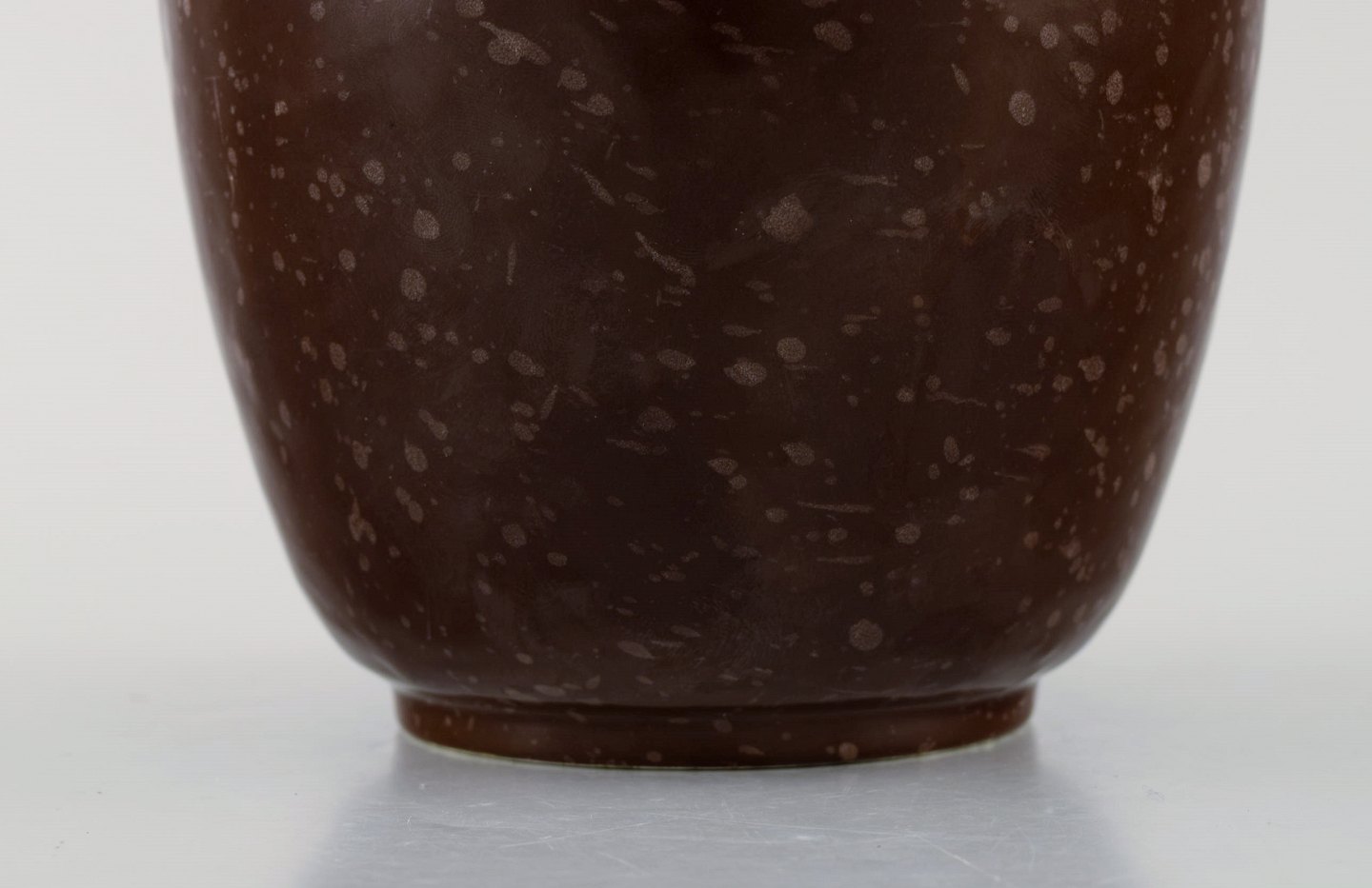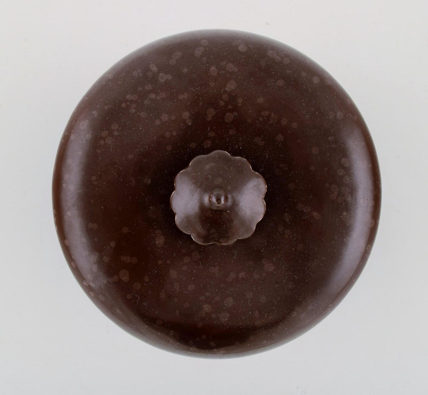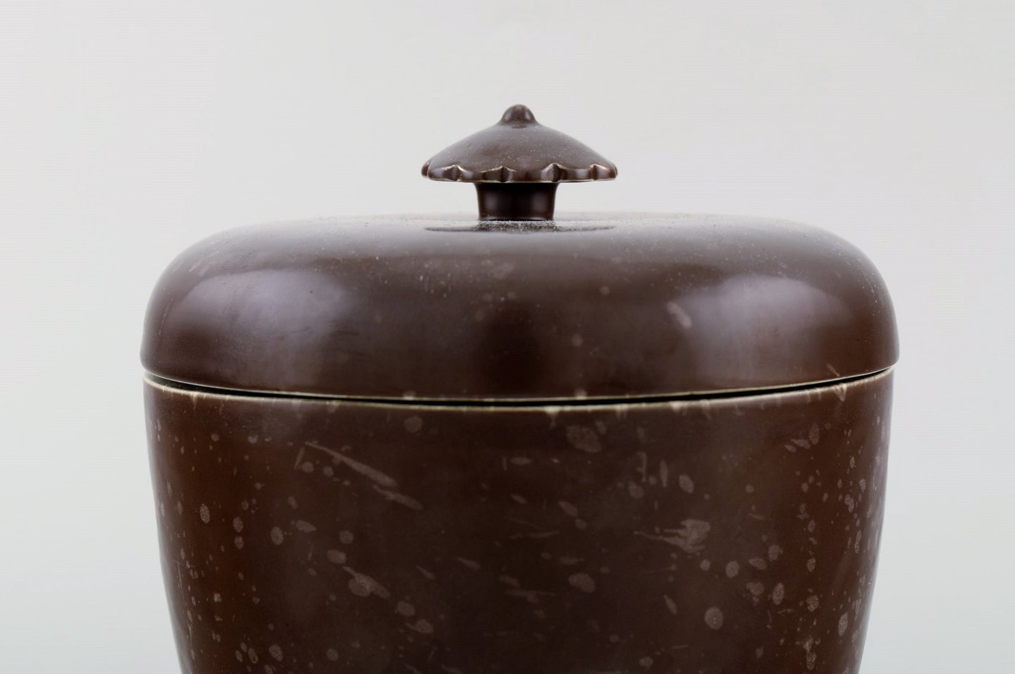 Wilhelm Kåge. Tidlig og sjælden art deco lågkrukke i glaseret keramik. Smuk glasur i brune nuancer. 1920/30'erne.