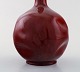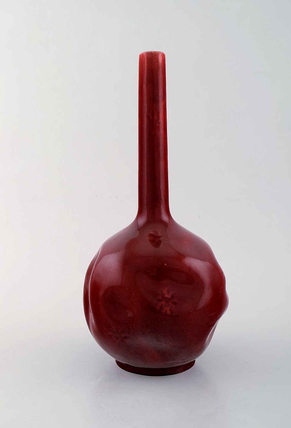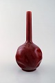 Rörstrand. Tidlig smalhalset vase i glaseret fajance. Smuk dyb rød glasur. Ca. 1900. Stemplet. I flot stand. Måler: 28 x 14,5 cm.