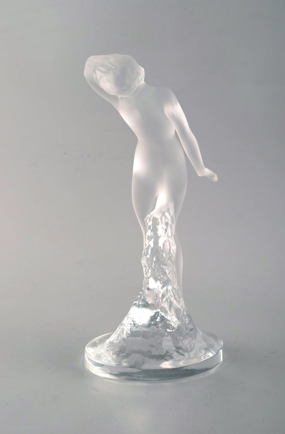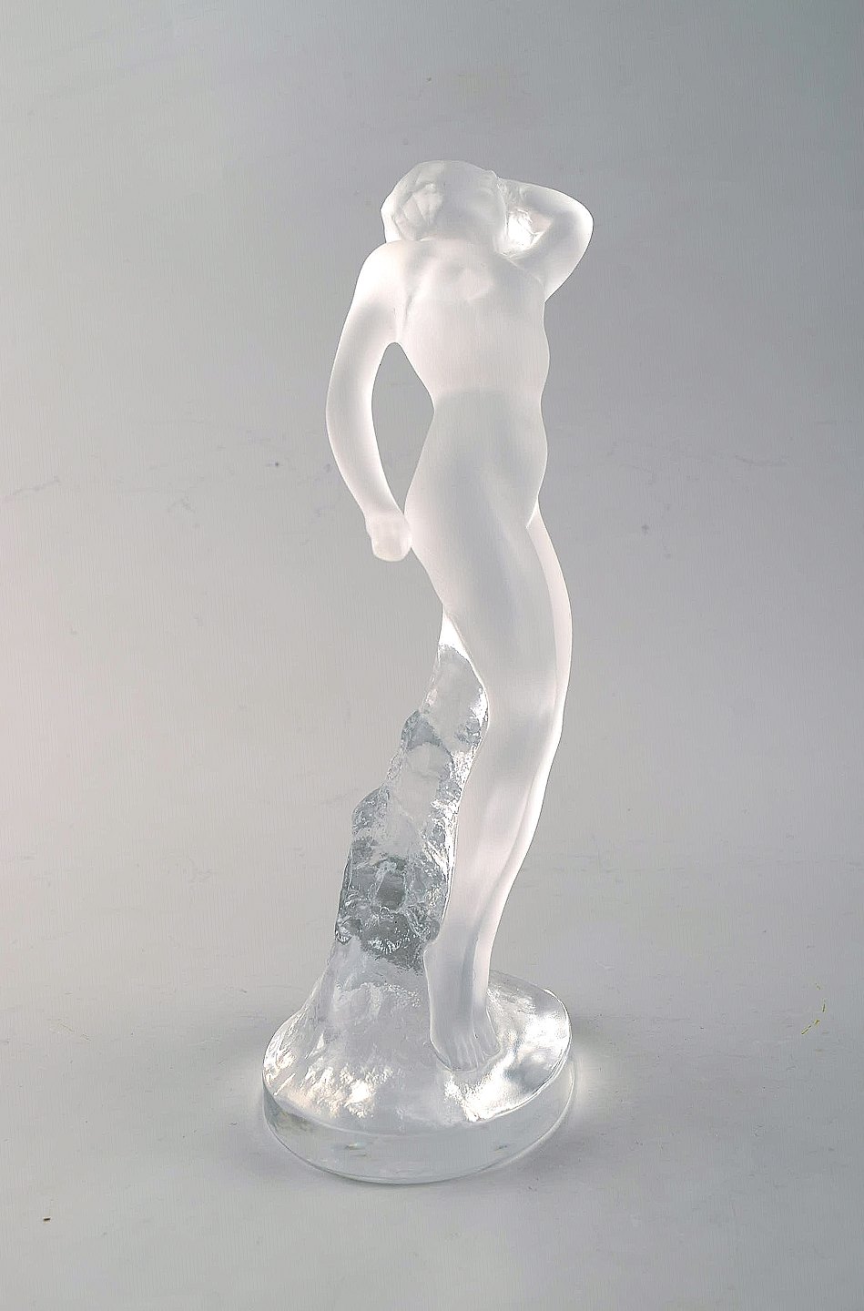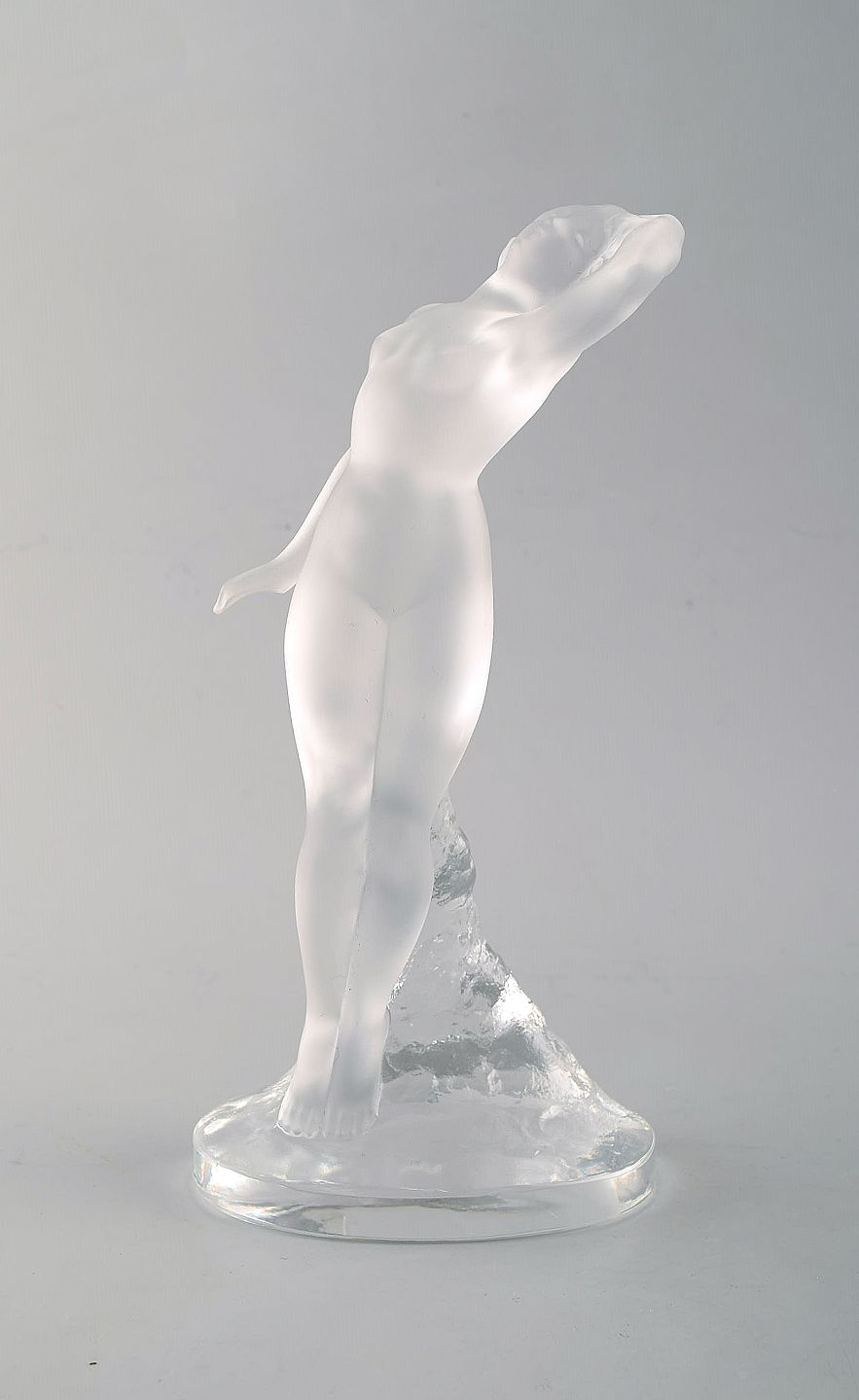 Lalique. Figure of naked woman in clear art glass. 1960's. In very good condition. Incised signature. Measures: 25 x 11.5 cm.