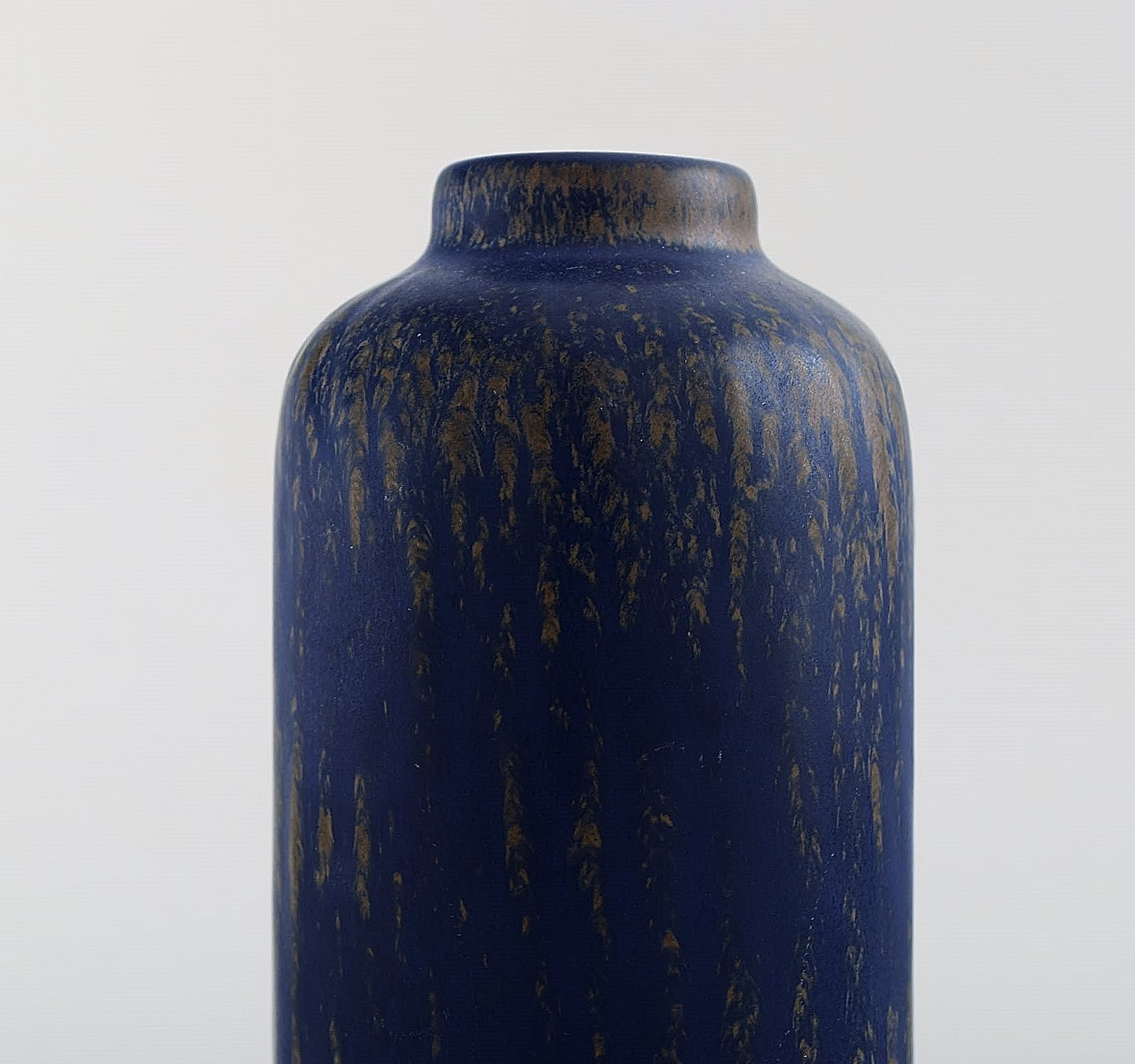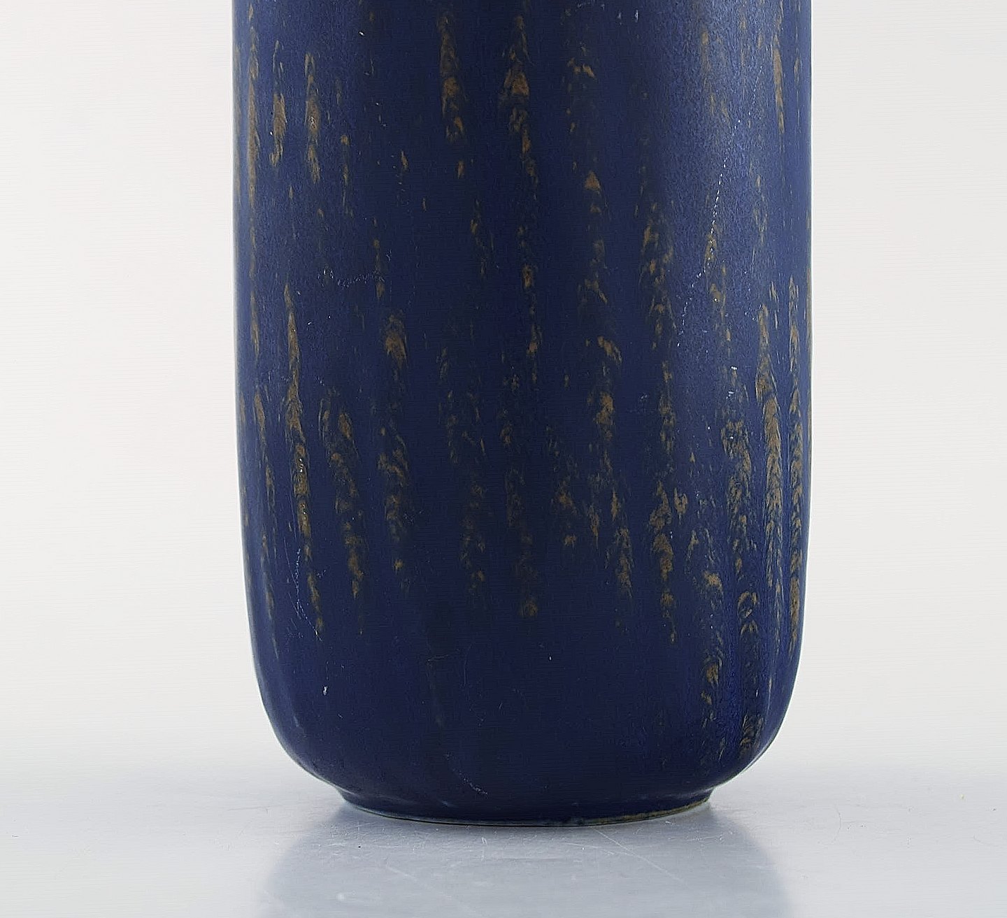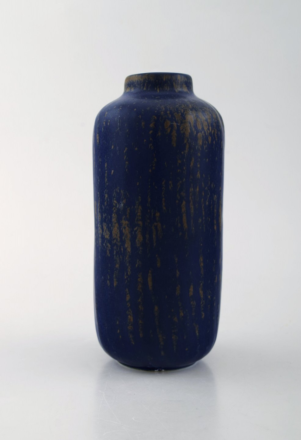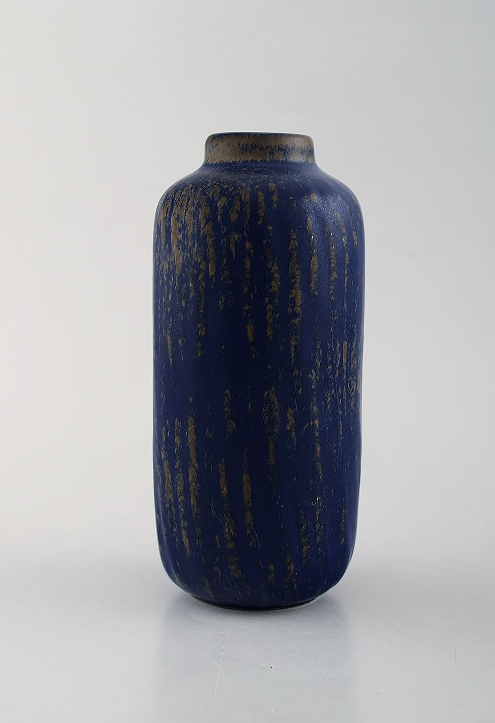 Gunnar Nylund for Rörstrand. "Rubus" Vase i glaseret stentøj. Smuk glasur i dybe blå nuancer. 1960'erne.
