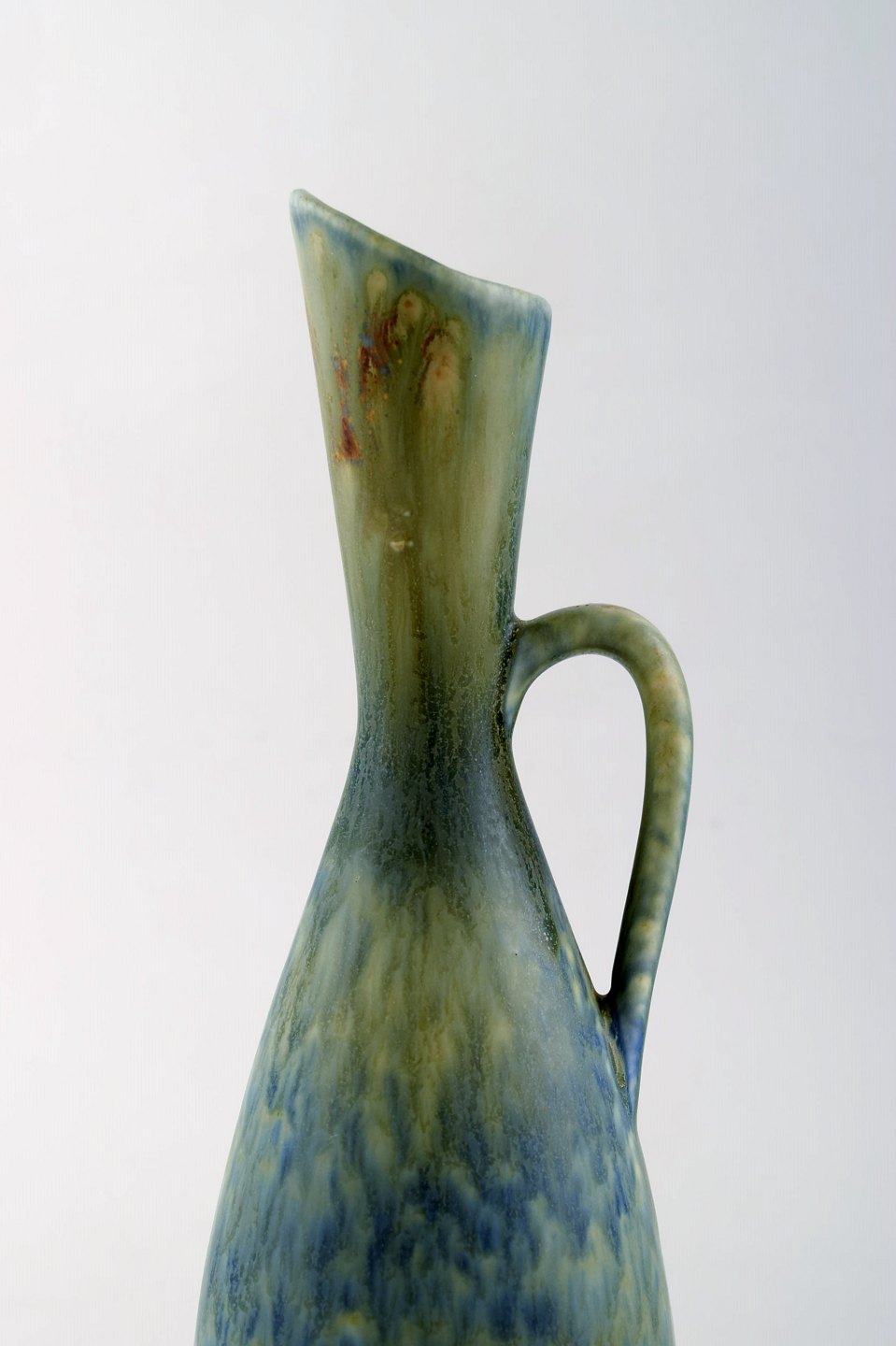 Carl-Harry Stålhane for Rörstrand. Vase med hank i glaseret stentøj. Smuk glasur i blå og grønne nuancer. 1960'erne. I flot stand. 2. Sortering Stemplet. Måler: 26,5 x 8 cm.