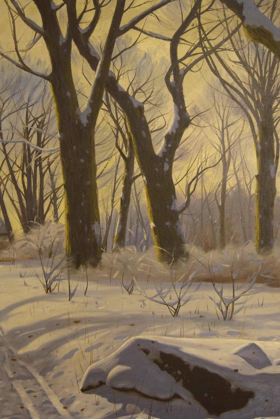 Willer Jørgensen (1897-1956). Vinterlandskab. Olie på lærred. I flot stand. Signeret. Lærredet måler: 98 x 69 cm. Rammen måler: 6,5 cm.