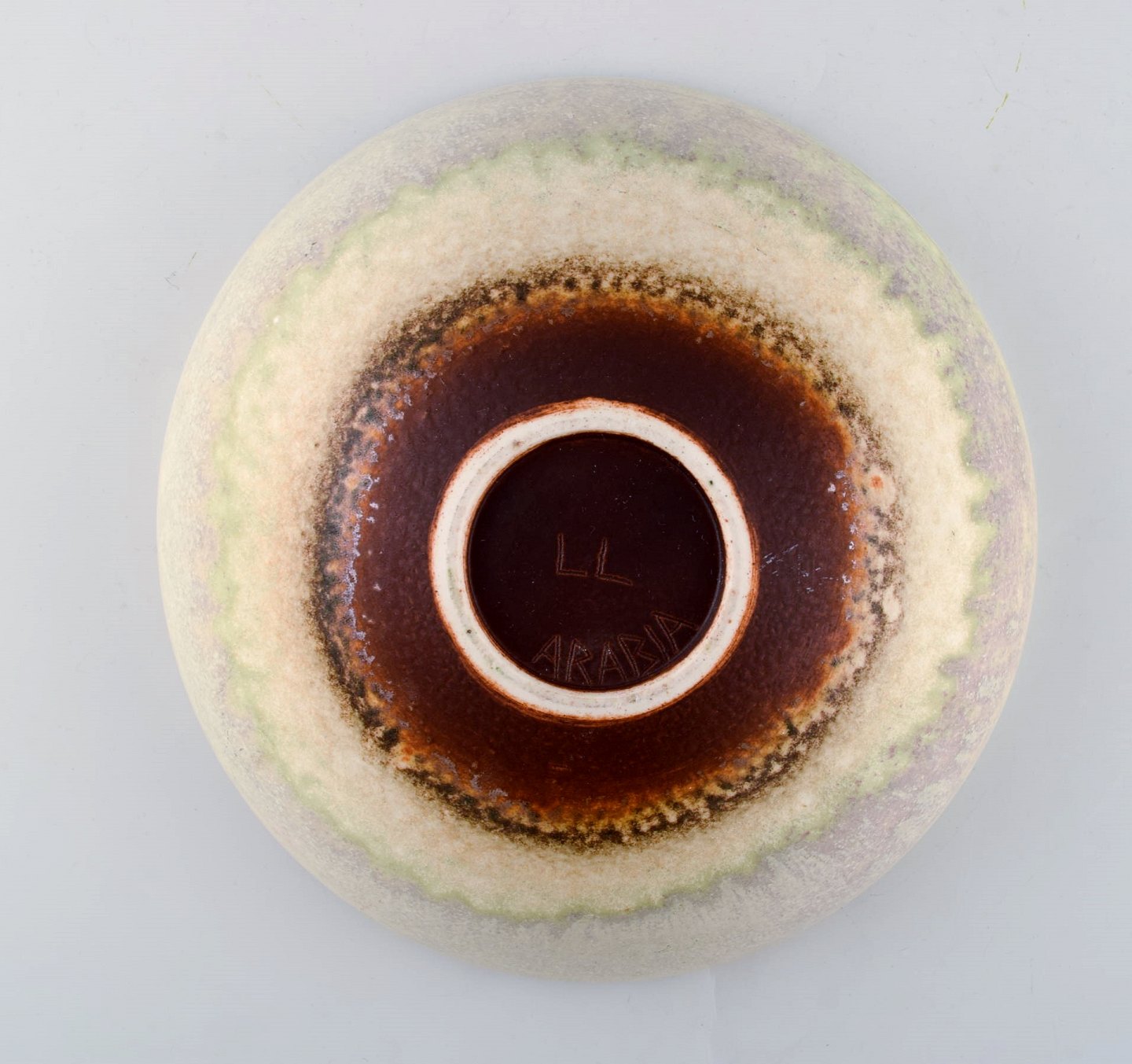 Liisa Hallamaa Larsen for Arabia. Stor unika skål i glaseret stentøj. Smuk æggeskalsglasur. Finsk design, 1960'erne.